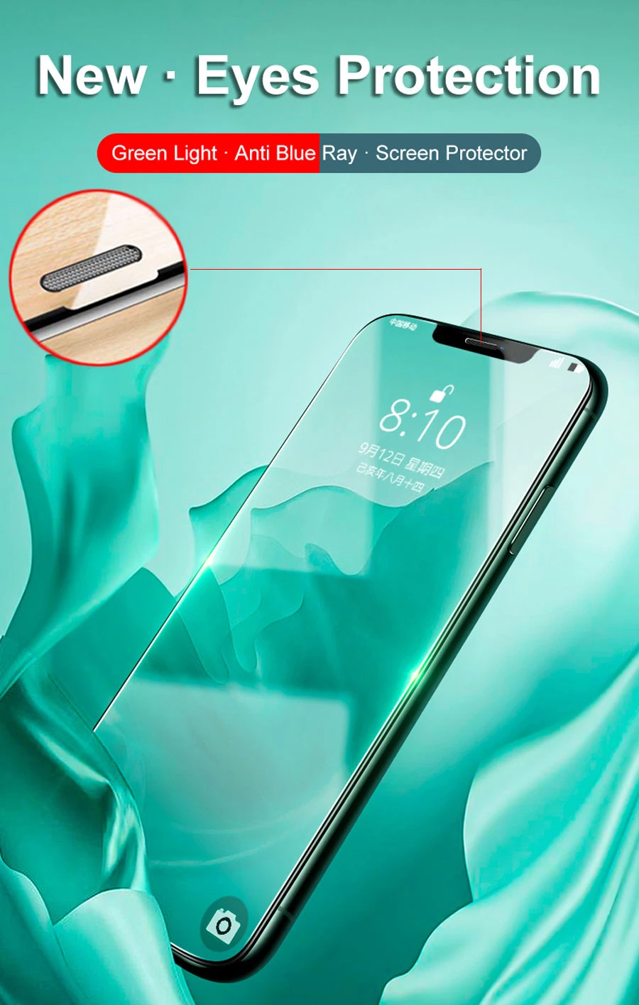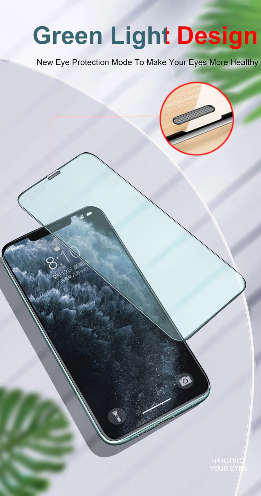 Зеленое закаленное стекло для iPhone 11 Pro Max защита для глаз Защита экрана для iPhone XR XS Max i78 Plus Бесплатная рамка i12 Pro Max