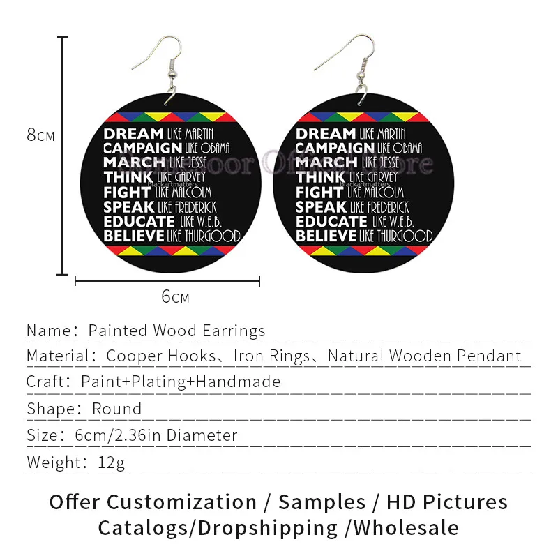 SOMESOOR Black History Heros афроамериканские деревянные серьги-под...