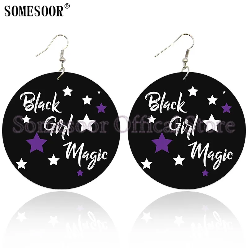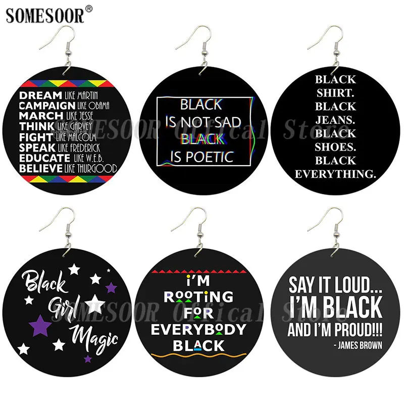 SOMESOOR Черная Девушка Волшебные африканские деревянные висячие серьги меланин Inspire Sayings Art Designs с обеих сторон Печатные для женщин Подарки