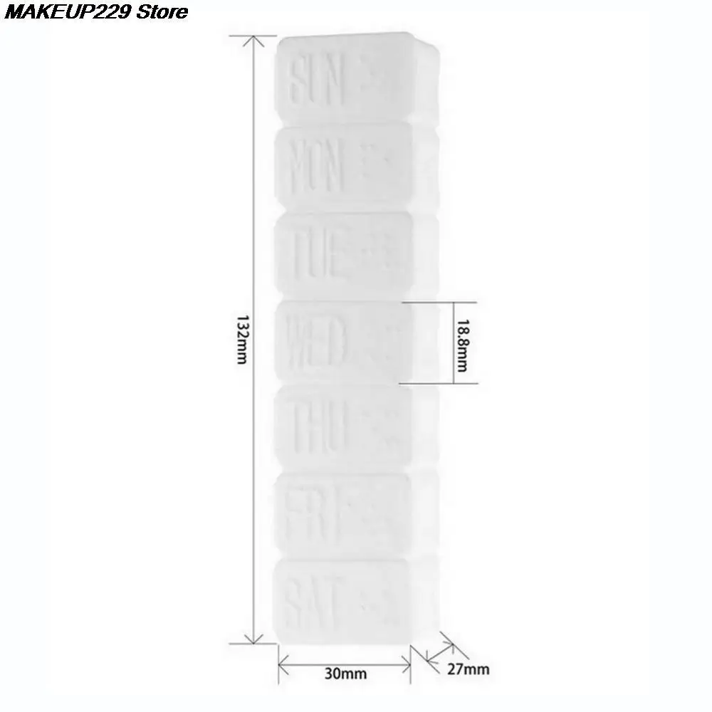 Изготовлен из высококачественного пластика.Разработан с 7 маленькими раздельными коробками (несъемными).Размер коробки: 132x30x27 ммРазмер каждой маленькой коробки: 20x30x27 ммУпаковка Содержание:(1 шт.) в течение 7 дней для медикаментов