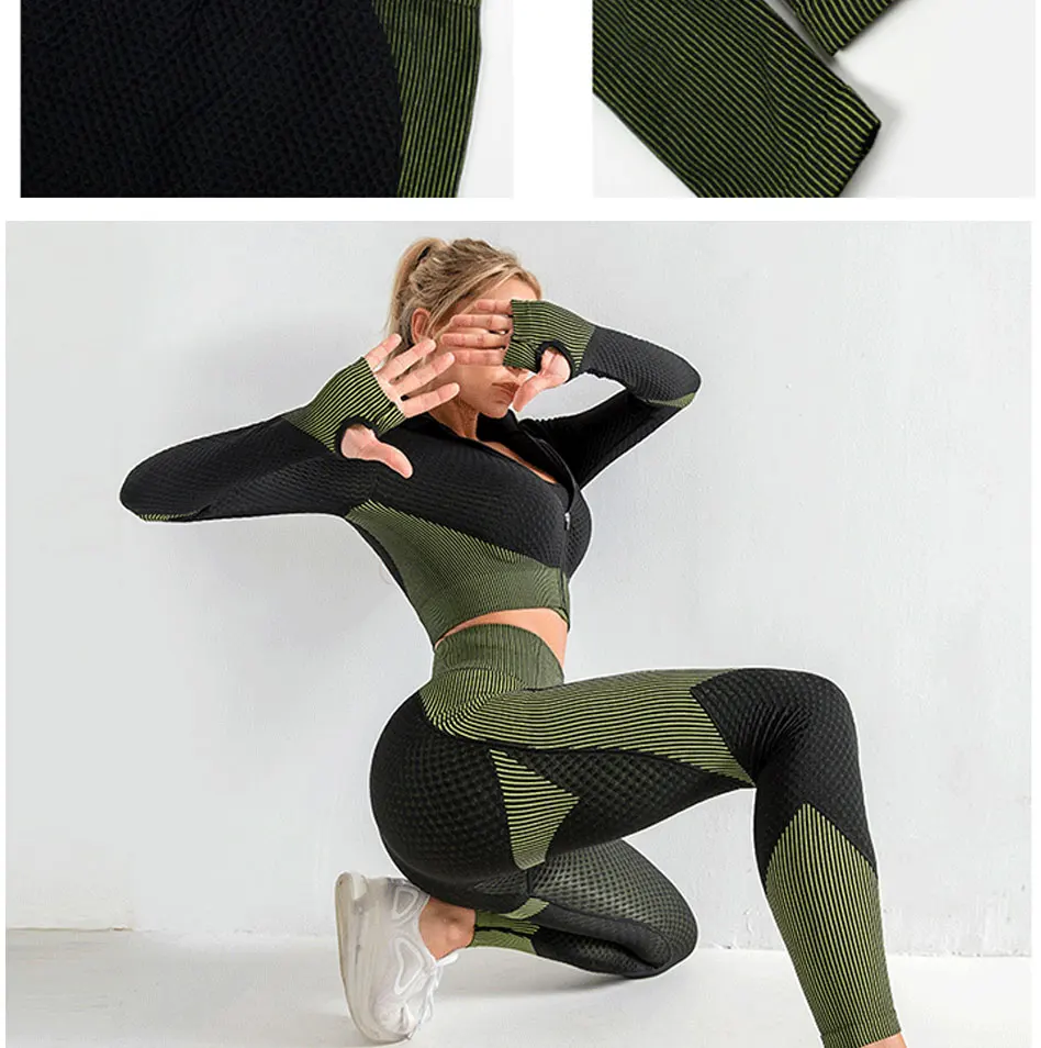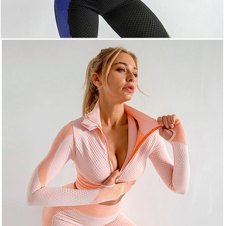 SALSPOR бесшовные комплекты для йоги женский топ на молнии с длинны...