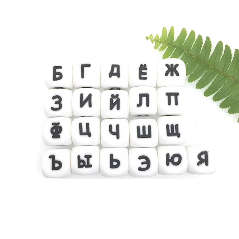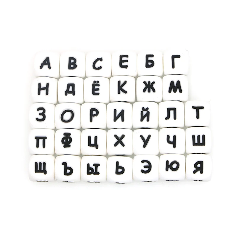10 шт., силиконовые бусины с буквами русского алфавита, 12 мм
