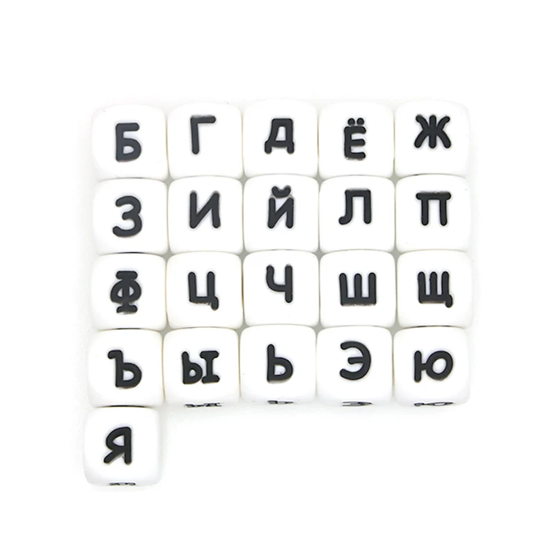 20 шт., силиконовые бусины с буквами русского алфавита, 12 мм