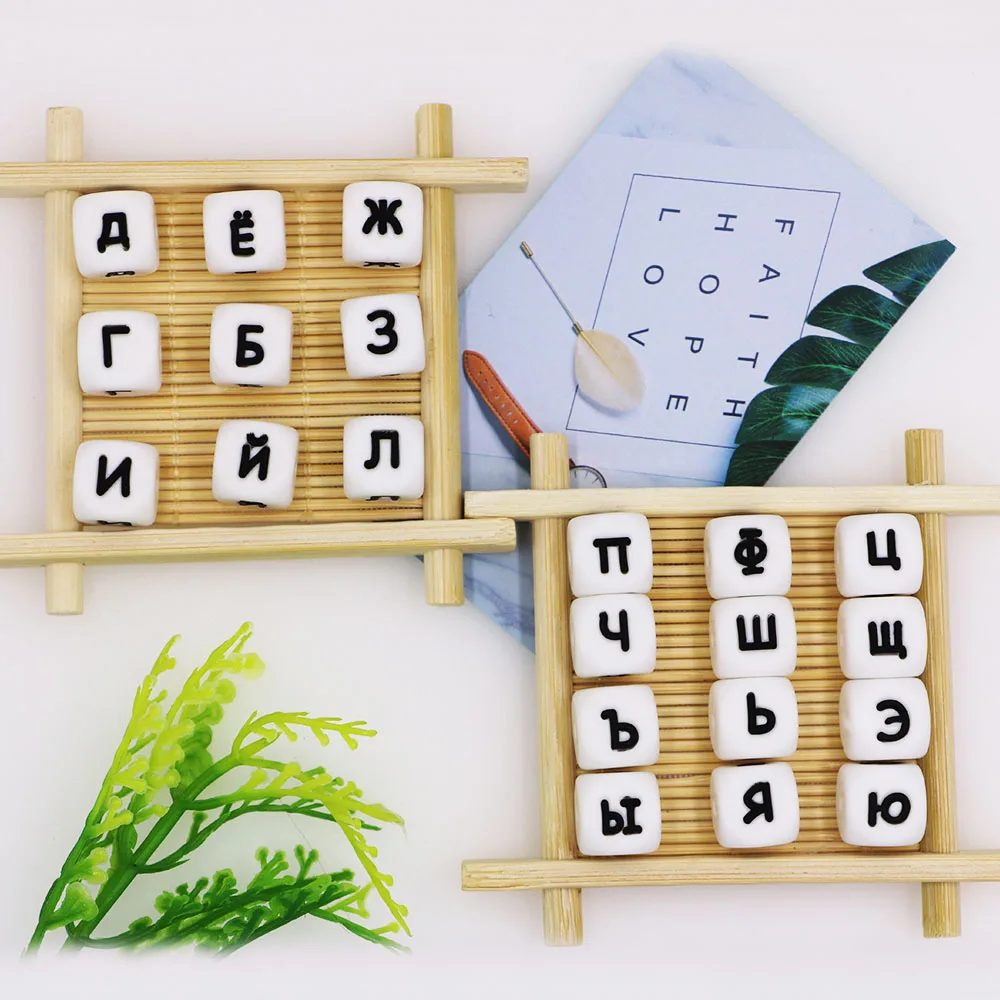 100 шт., силиконовые бусины с русскими буквами, 12 мм