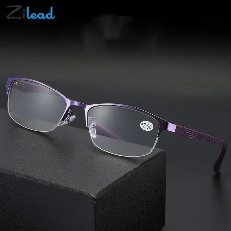Очки Zilead для чтения для женщин и студентов, металлическая полуободковая оправа, для дальнозоркости, HD линзы, диоптрии + 1 + 2 + 3 + 4
