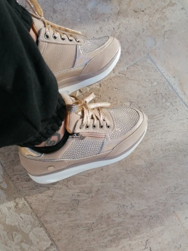 На российский 39* размер подошел размер 41. Кроссовки удобные, мягкие. Удобно надевать и снимать, т.к. сбоку есть молния. Подходят для теплой погоды, например для начала осени. Единственное замечание - очень много много отделки под "серебро", и шнурки тоже серебряные. Под длинными брюками это незаметно.