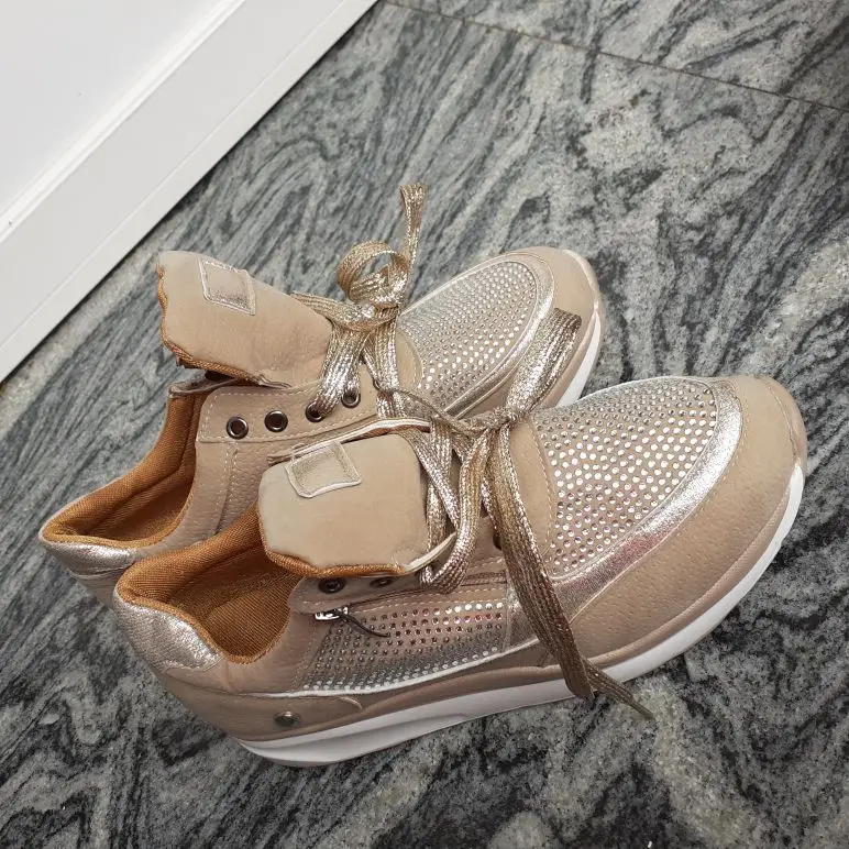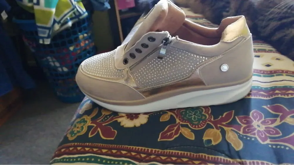 На фото вы видите некоторые более реальные Тапочки бежевый цвет на самом деле довольно плохой Золотой получил, плохое качество материала, низкий размер, и я не рекомендую его, потому что есть товары, которые по той же цене стоят больше