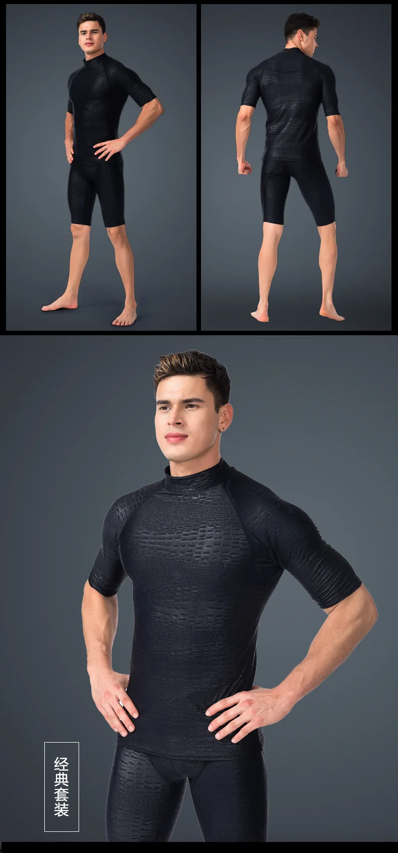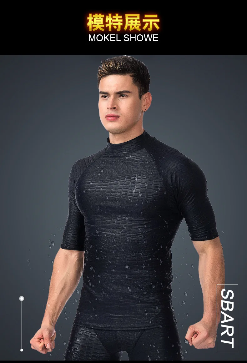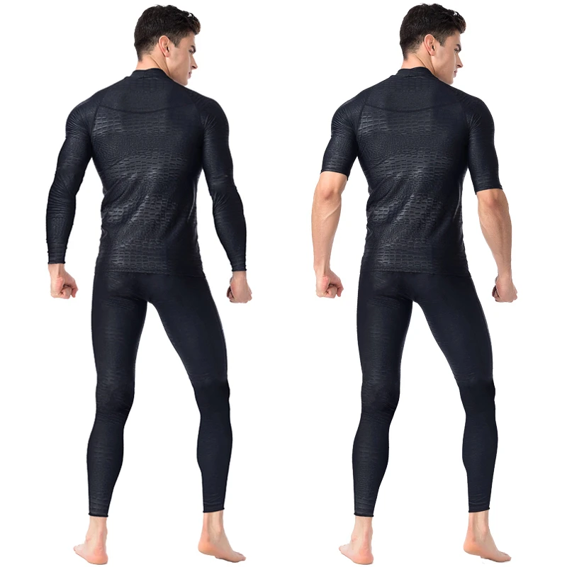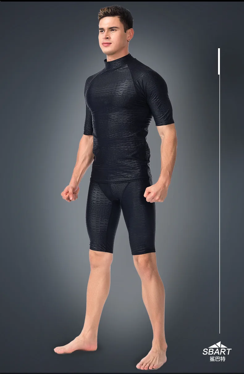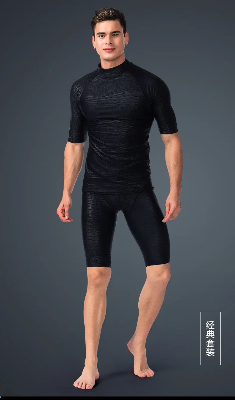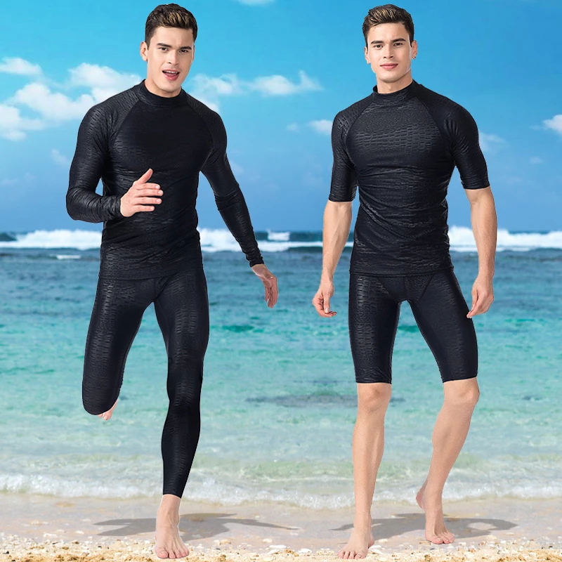 Черный УФ-купальник из кожи акульи, костюм для серфинга и дайвинга, Летний Пляжный купальный костюм, Мужская одежда для плавания, комплект с длинными шортами и брюками с разрезом