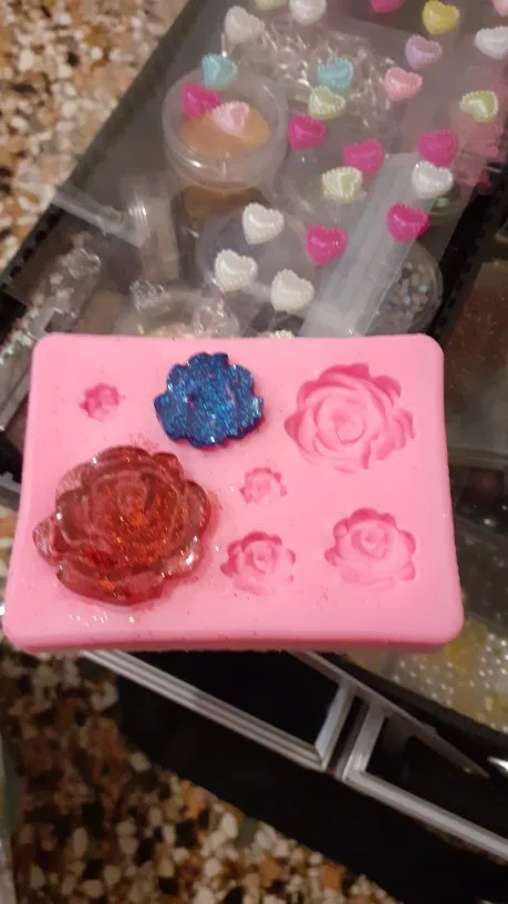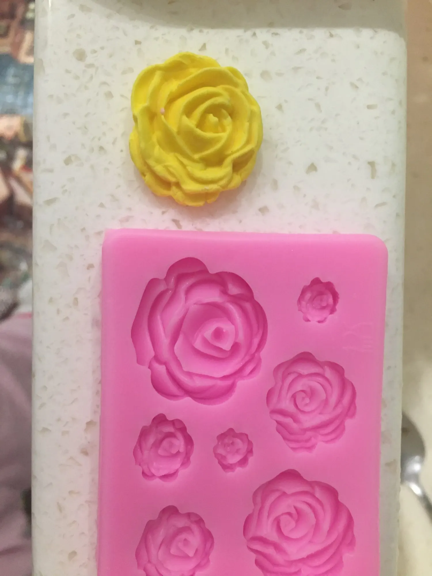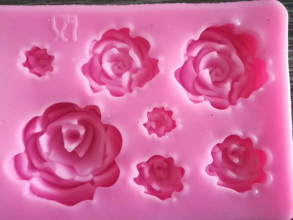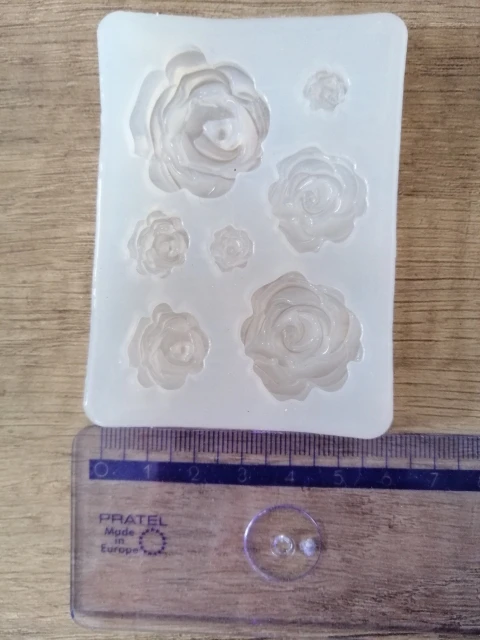Оттиски получились чёткие...Розочки разной величины. Размер у молда 8,5/6,2см.