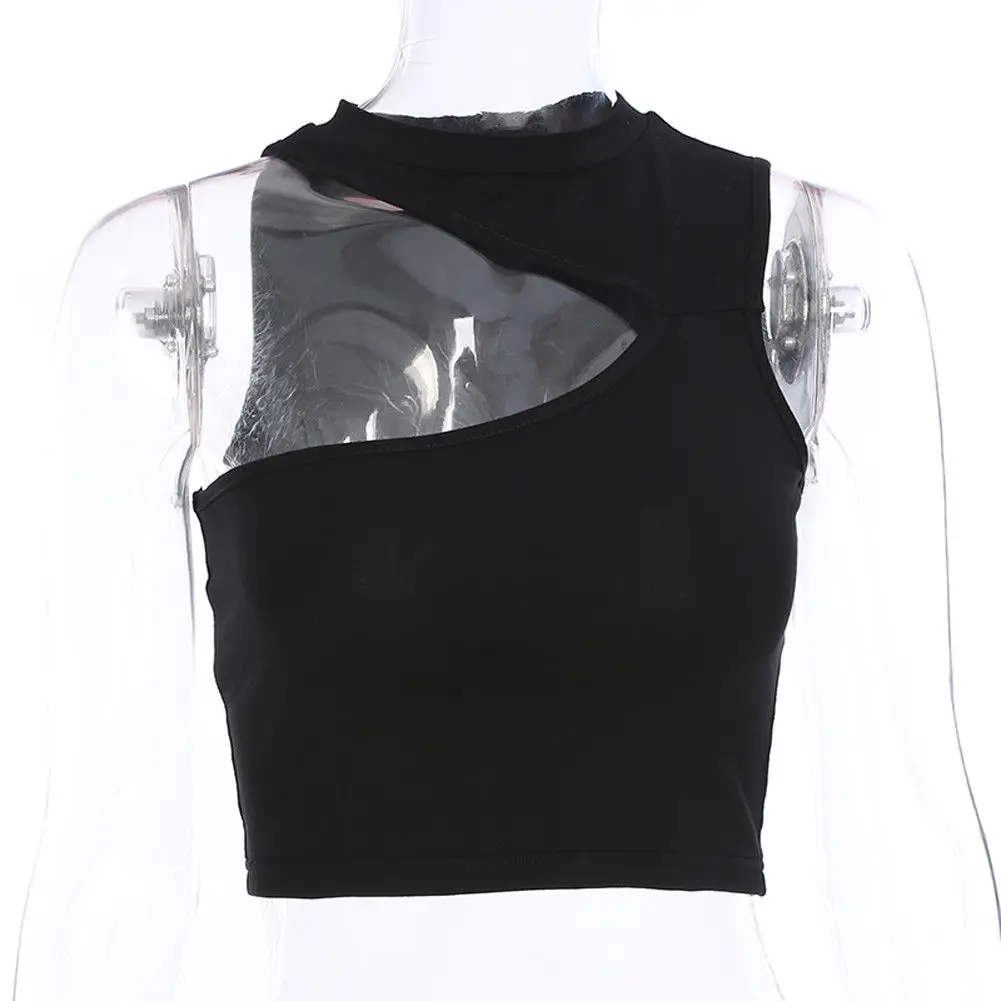 Hhirigin Модный женский топ летний Повседневный на одно плечо черный однотонный топ без рукавов укороченный Топ Размер S-L