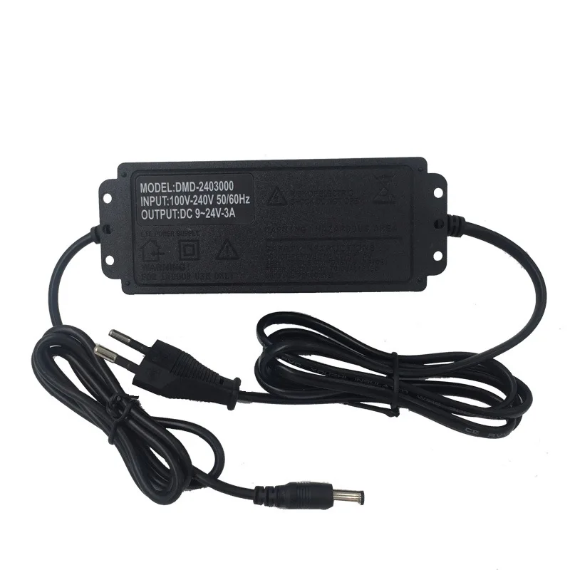 ● Регулируемый источник питания ● Прочный, простой в эксплуатации, хорошая защита от помех ● Быстрая зарядка, низкое энергопотребление, высокая стабильность ● С защитой от перенапряжения/перегрузки по току/перегрузки и короткого замыкания ● Широкое применение: микро электрическая дрель/мониторинг/маршрутизатор/Офисное оборудование/электрическая группа/приставка/Электрический вентилятор со светильник кой/массажная подушка/косметологический инструмент/небольшой Телевизор/медицинское оборудование/вход защитная карта/цифровые устройства Характеристики: Наименование: Регулируемый адаптер питания Цвет: в основном черный Вход: AC100-240V 50/60 Гц Выход: DC 3-12V / 3-24V / 9-24V Регулируемый Выходной ток: 5A / 2A / 3A Мощность: 60 Вт 48 Вт 72 Вт Общая длина кабеля: 100 см Эффективность: 95%