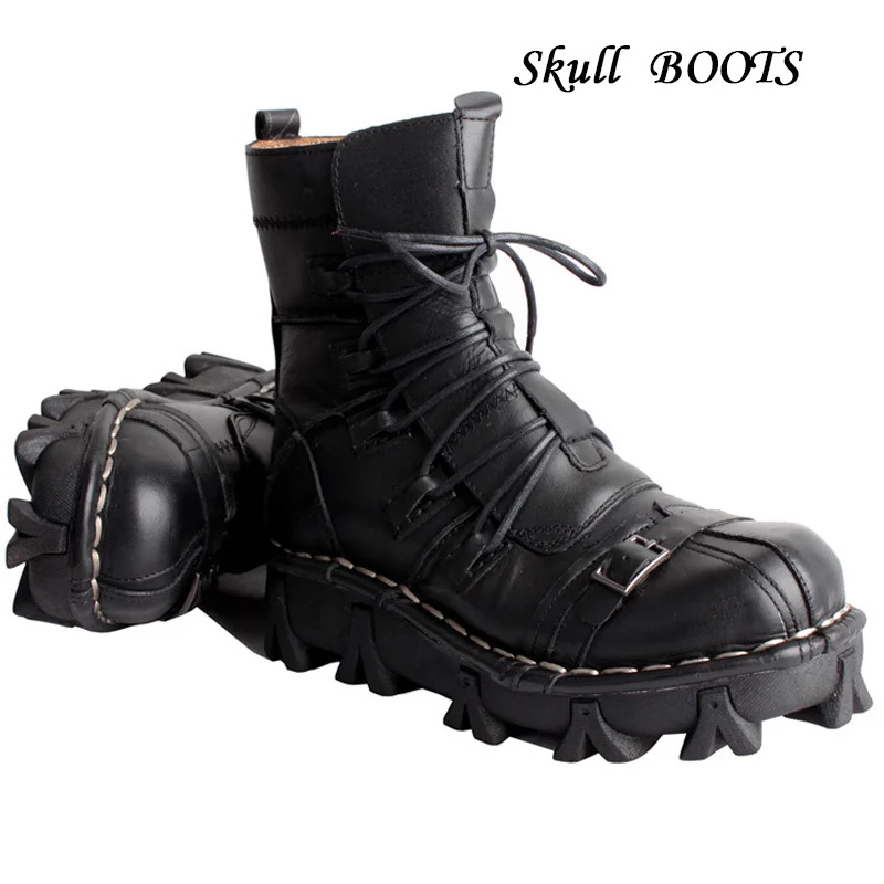 Ботинки мужские рабочие из натуральной воловьей кожи, военные боевые ботинки, готический стиль, Череп, стиль панк, винтажные мотоциклетные ботинки, 50 шт.
