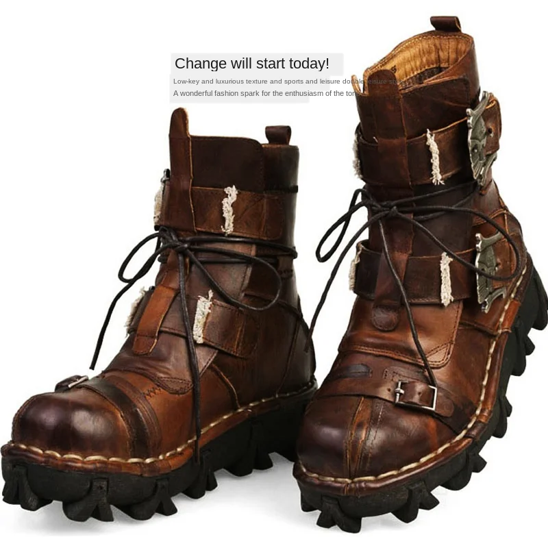 Ботинки мужские в байкерском стиле, ботинки в стиле милитари из нат...
