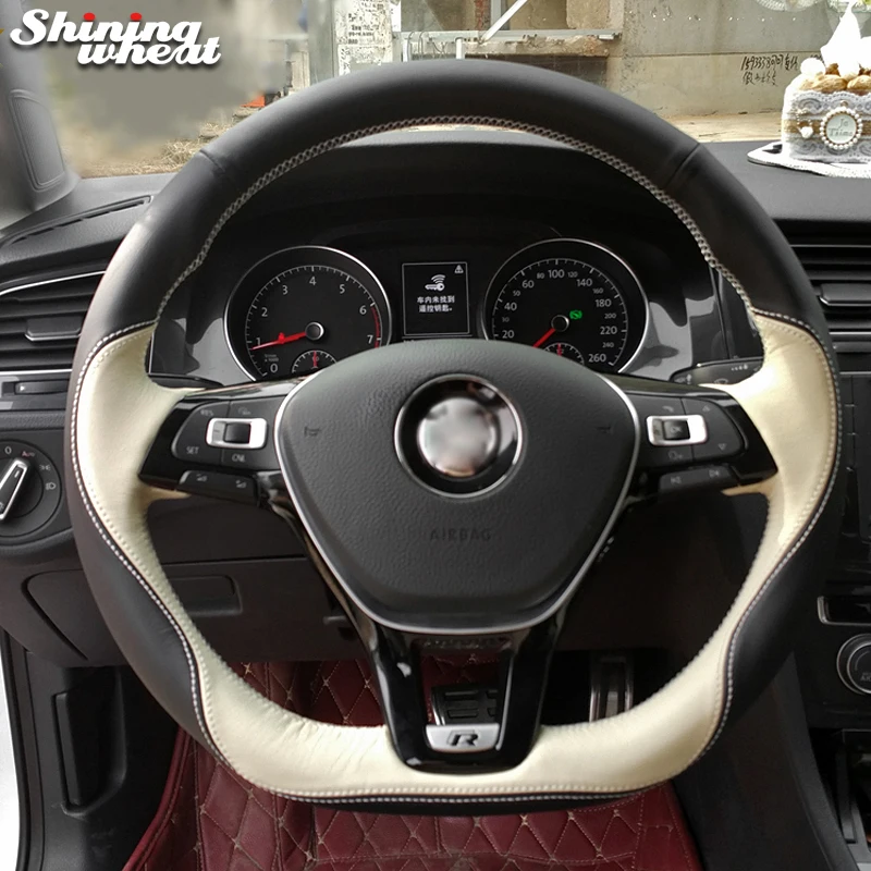 Блестящие пшеницы белого и черного цвета из натуральной кожи кожаное рулевое колесо Крышка для Volkswagen VW Golf 7 Mk7 новые поло Jetta Passat B8 Tig