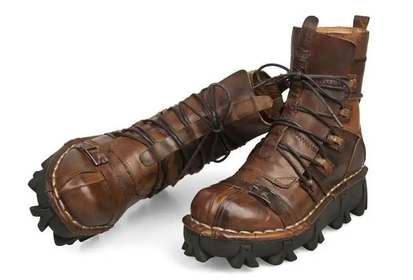 Мужские Винтажные уникальные мотоциклетные ботинки из натуральной к...