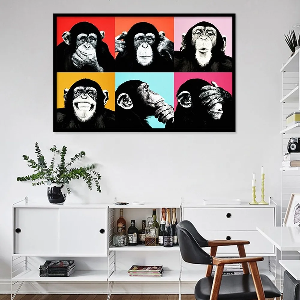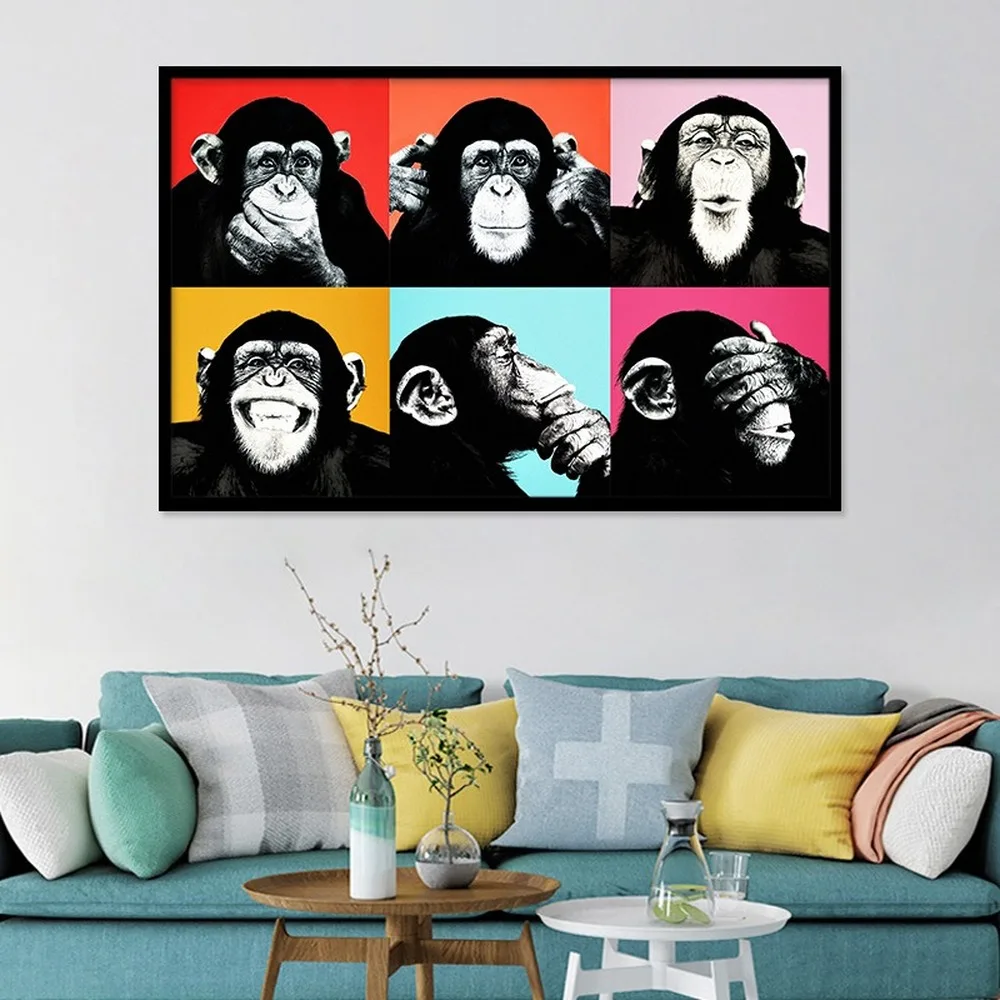 Шесть обезьяны шимпанзе Холст Картина забавное животное выражение постер гостиная висячая картина домашний декор настенные художественные фотографии