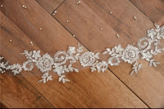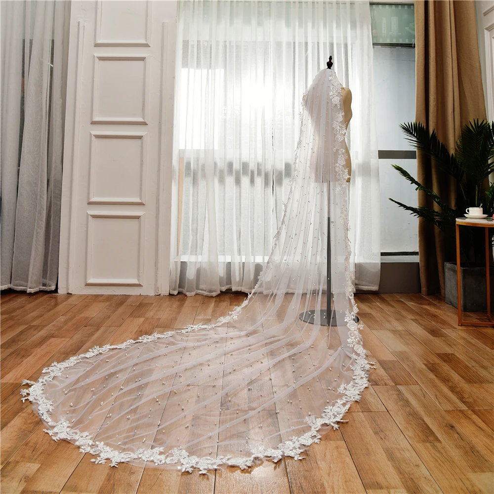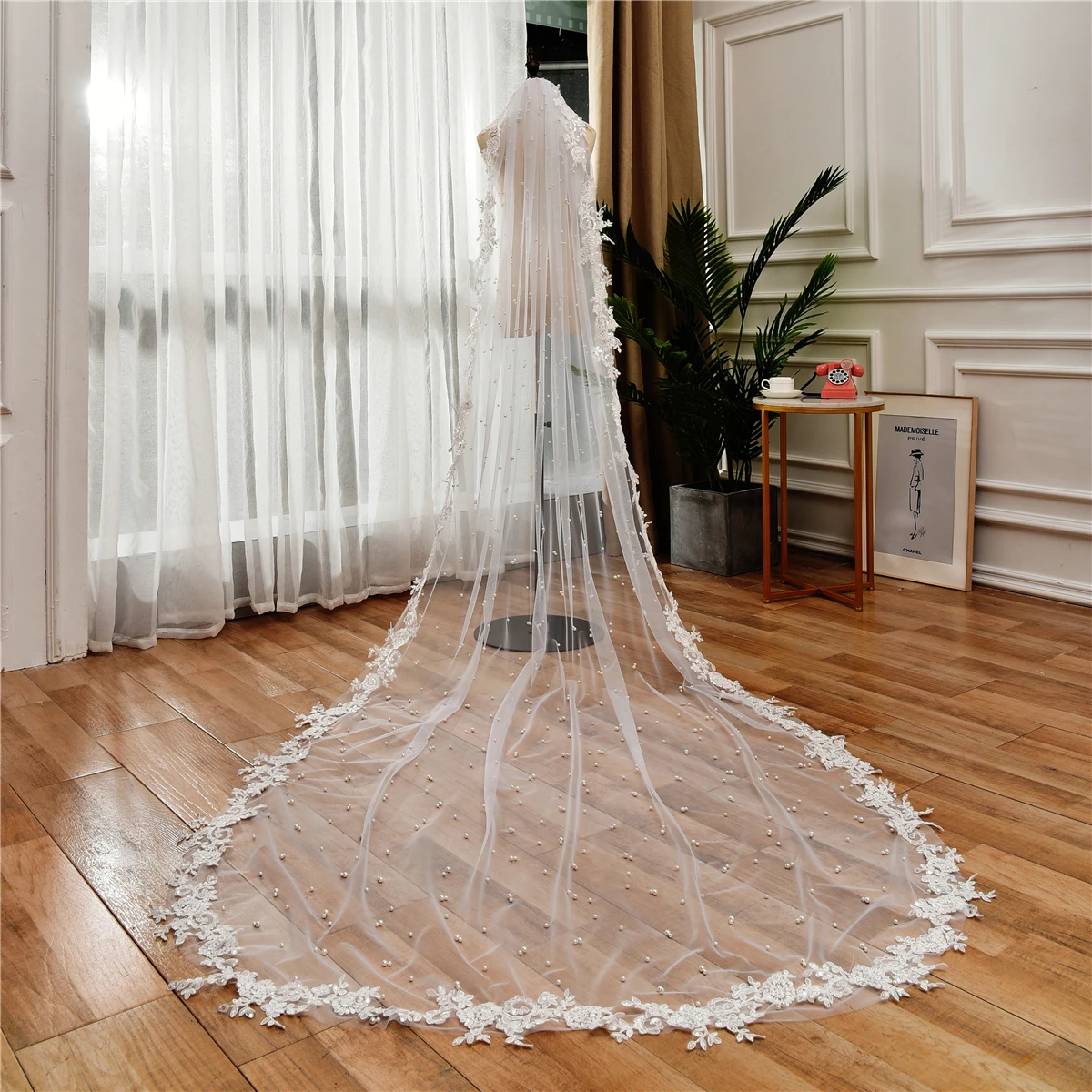 Свадебная фата с жемчугом, однослойная Длинная свадебная накидка, р...