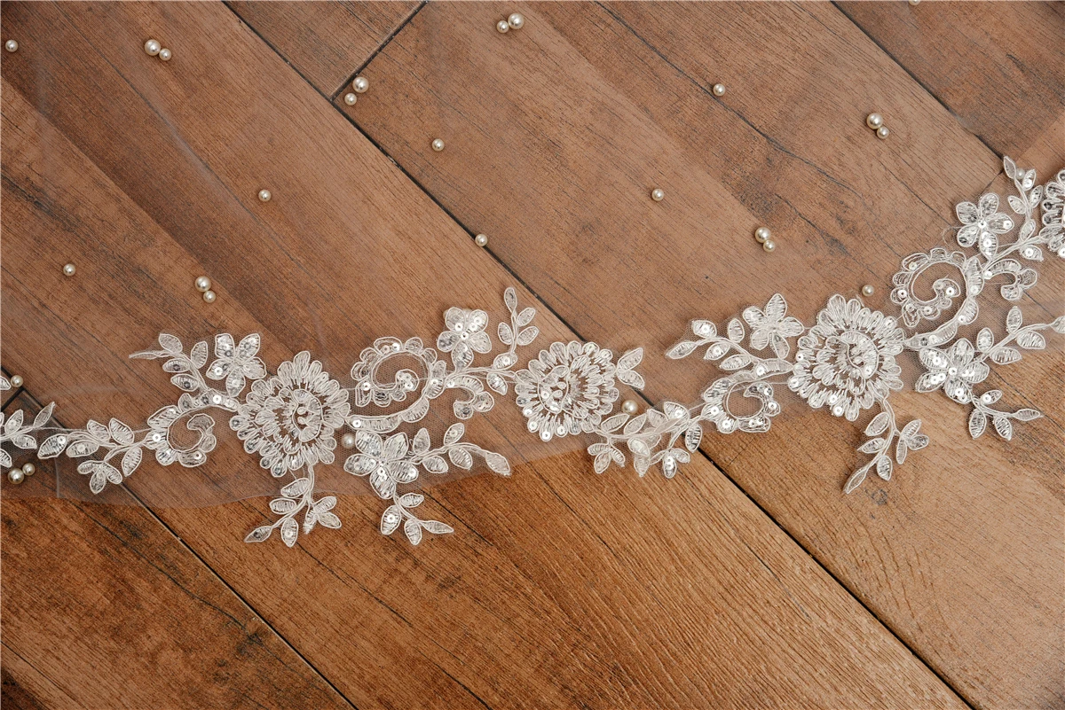 БелаяСлоновая свадебная фата с гребнем и жемчугом, аппликация, блестки, кружевные края, свадебная фата для невесты, 3 метра