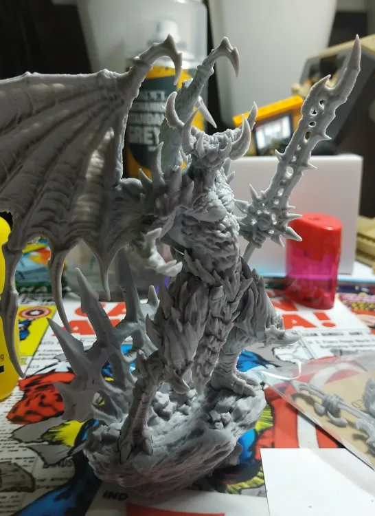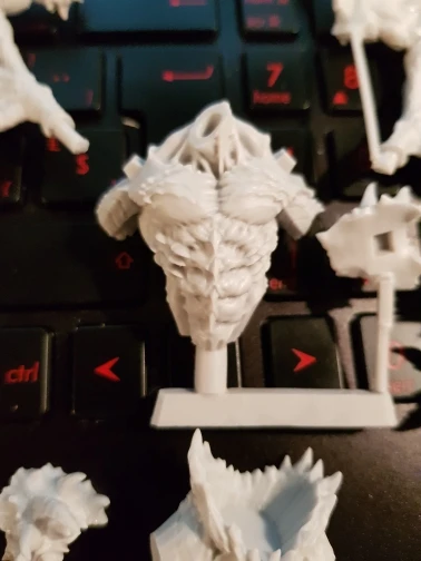 Фигурка хорошего качества, очень мало дефектов, чтобы исправить и изменить пистолет или голову, это очень хорошее соотношение цены и качества Сборка проста даже без инструкций, и фигурка приятна для рисования. Обратите внимание, что это смола, она более хрупкая, чем пластик, в украшении она идеальна, просто будьте осторожны, если вы переместите ее, чтобы играть в настольную игру.