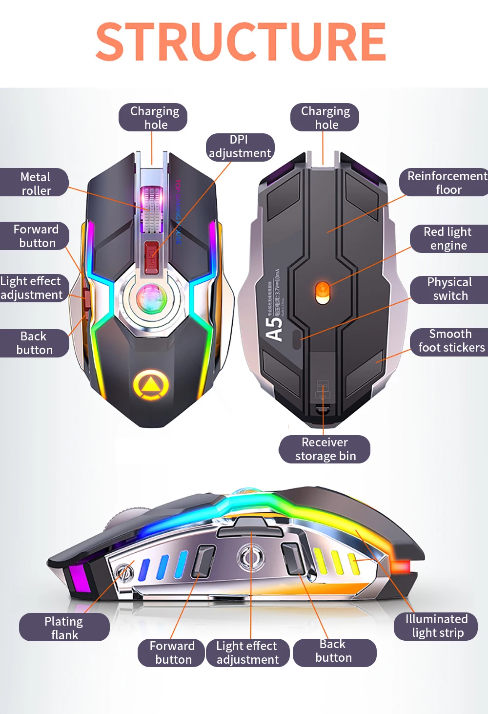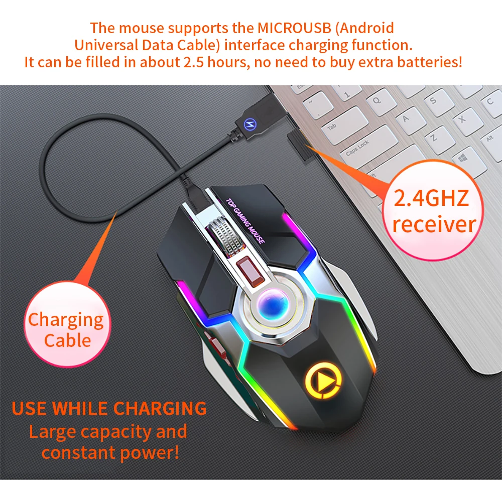Беспроводной игровой Мышь Перезаряжаемые компьютер Мышь бесшумный эргономичный 7 клавиш rgb-пульт со светодиодной подсветкой для ПК компьютерной игры Dota 2 Fortnite