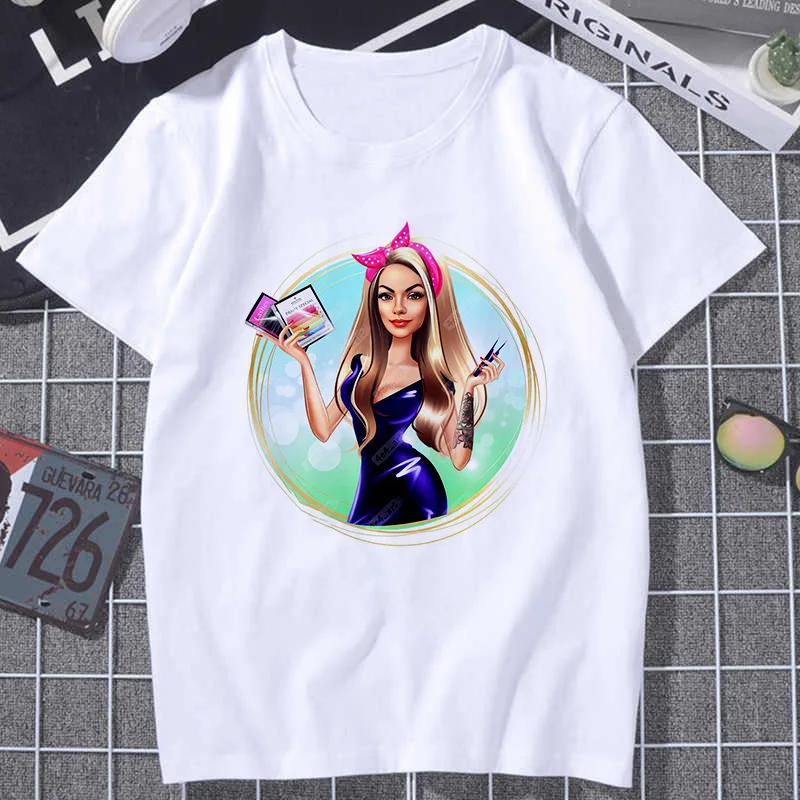 2021 Новая красивая женщина для курящих Повседневная футболка с при...