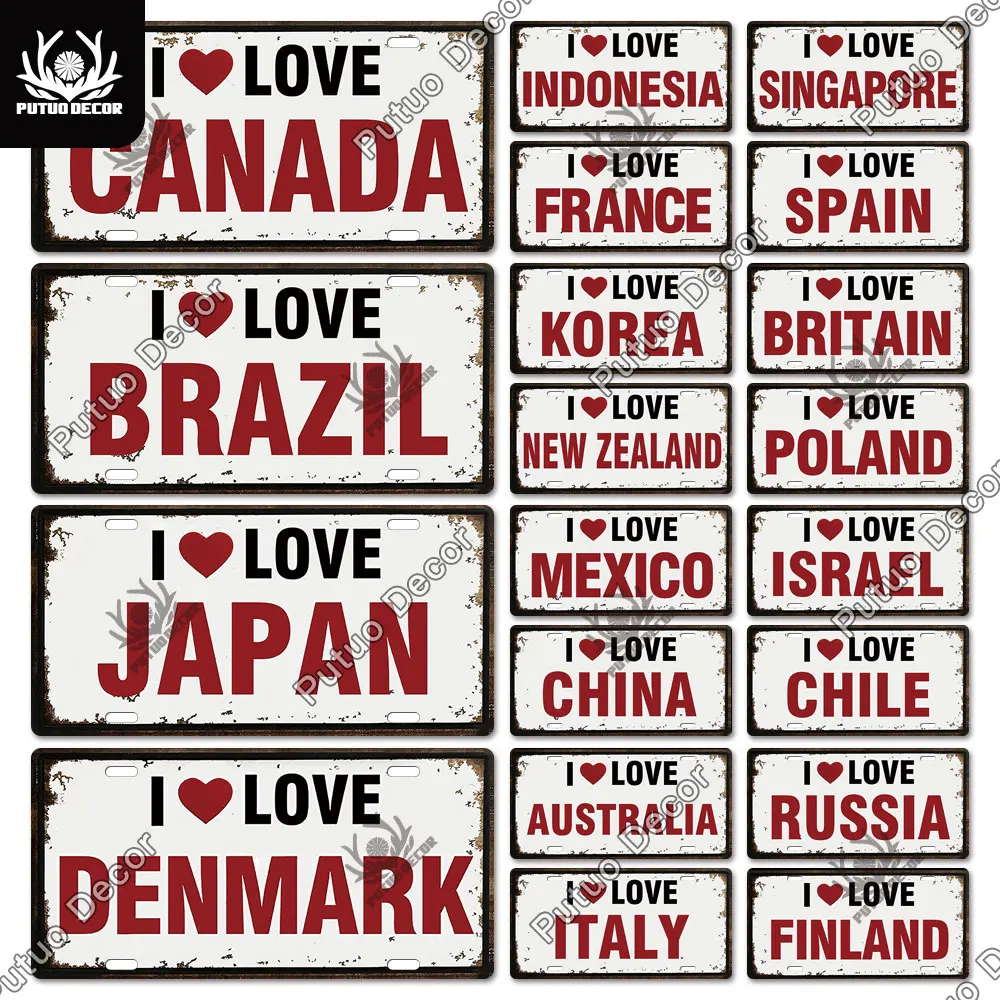 Декоративная табличка Putuo в виде лицензии на влюбленные страны, металлический винтажный метельный знак, украшение для гостиной, двери, клуба, гаража, Настенный декор