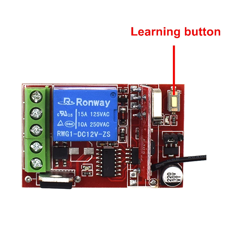 Технические данные:Входная мощность: AC DC 12V-24VТок в режиме ожидания: <5 мАЧастота RF: 433 МГцРежим работы RF: СупергетеродинЧувствительность приема: >97 дБмРасстояние передачи: 20-100 м (открытое пространство)Режим декодирования: программное декодирование MCUУдаленное Хранение: 25 шт.Поддержка удаленного типа: Обучающий код, непрерывный код,Режим работы: Мгновенный, переключение, фиксацияХарактеристики пульта дистанционного управления с плавающим кодом:Рабочая частота: 433,92 МГцПитание от батареи кнопочного типа 12 в 27 А (батарея в комплекте),Материал: ПВХ.Кнопка: 4 кнопкиРазмер: 70 мм x 30 мм x 13 мм;Рабочее напряжение: 12 В 27 А;Мощность передачи: 10 мВтРежим модуляции: ASK (AM).Тип кодирования: скользящий код.Расстояние передачи: 80 мПримечание:Различные варианты включают разные пакеты: