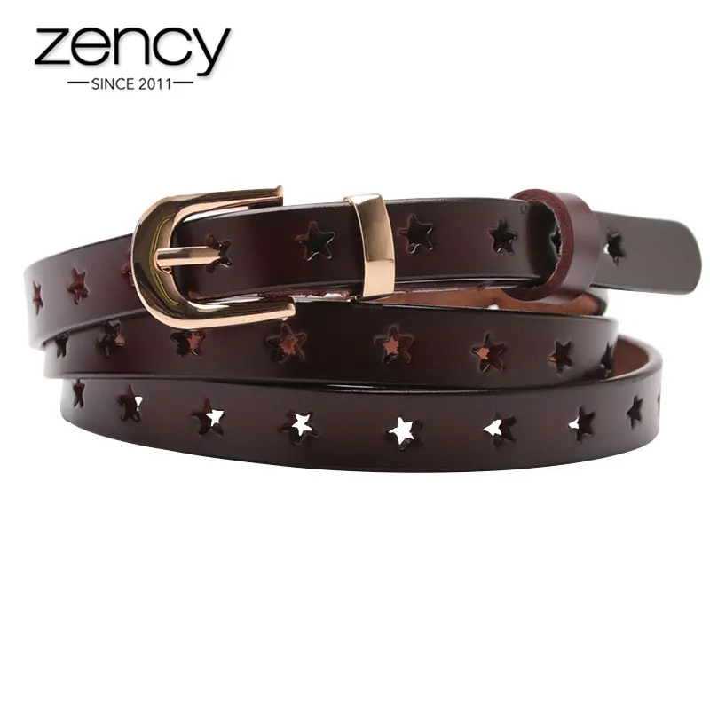 Zency 100% натуральная кожа женские поясные ремни пятиконечная звезда выдалбливают дикий свитер юбка брюки декоративный пояс маленький ремень