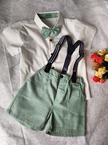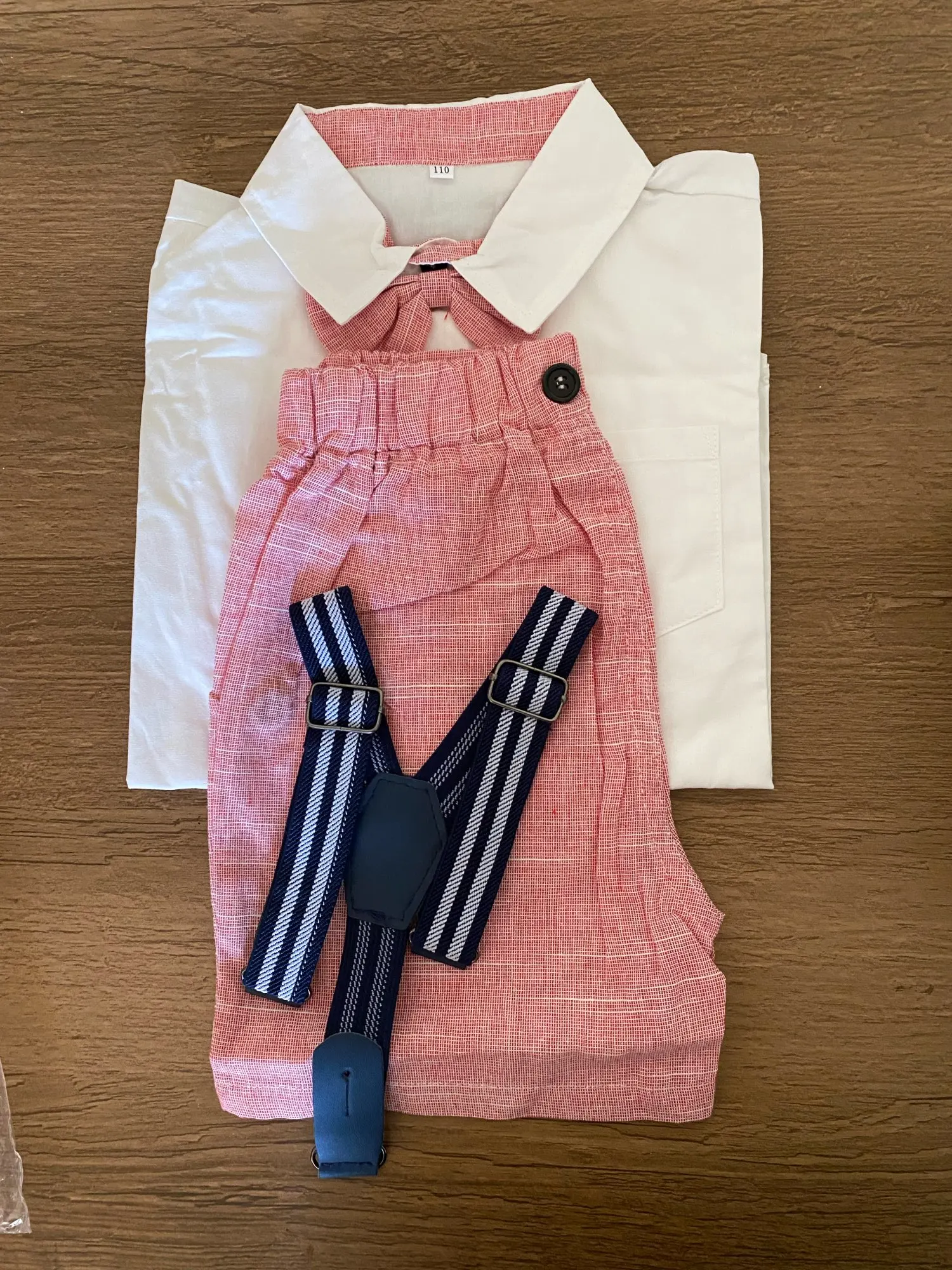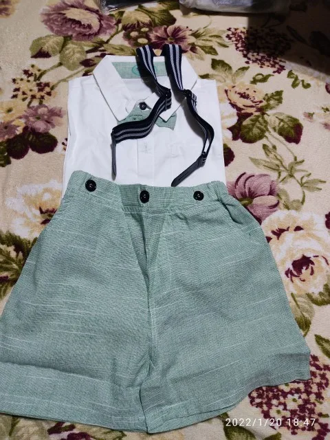 Наряд для джентльмена Отличный летний костюм. Шорты выполнены из льна, имеют карманы, на эластичной резинке. Рубашка хлопковая, со стильными пуговицами и милой бабочкой из льна. Качество шикарное, пошив отличный, швы ровные посторонних ниток нет. Размер взяла 130, размерный ряд продавца соответствует. В комплекте идут подтяжки с эластичной резинкой, отлично дополнят образ стиляги Доставка заняла 10 дней, рекомендую Топ и топ, летний детский официальный костюм для маленьких мальчиков, рубашка с коротким рукавом + брюки на бретелях, повседневная одежда, наряд для джентльмена, комплект из 2 предметов