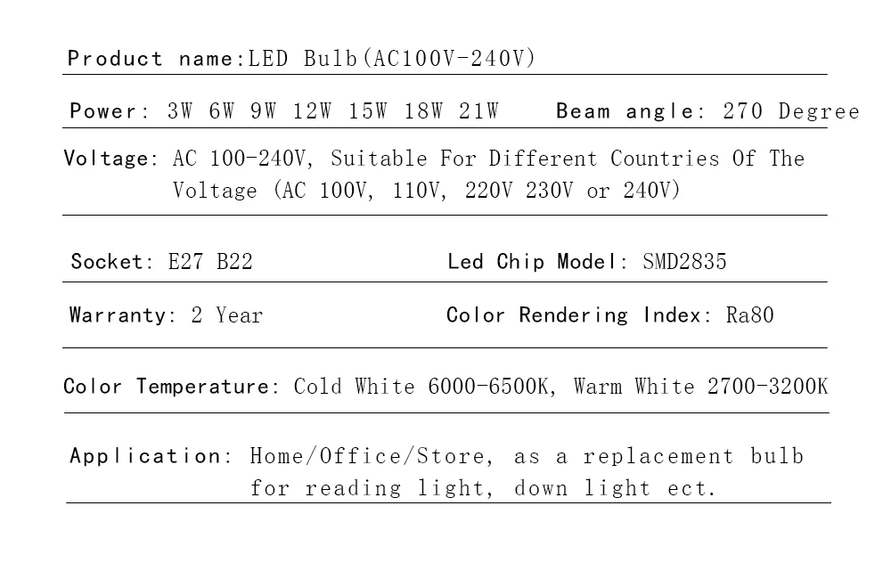 Страна: UA Emitting Color: Warm White Color: E27 Wattage: 15W AC100-240V Доставка: Standard Shipping 25.12.2021