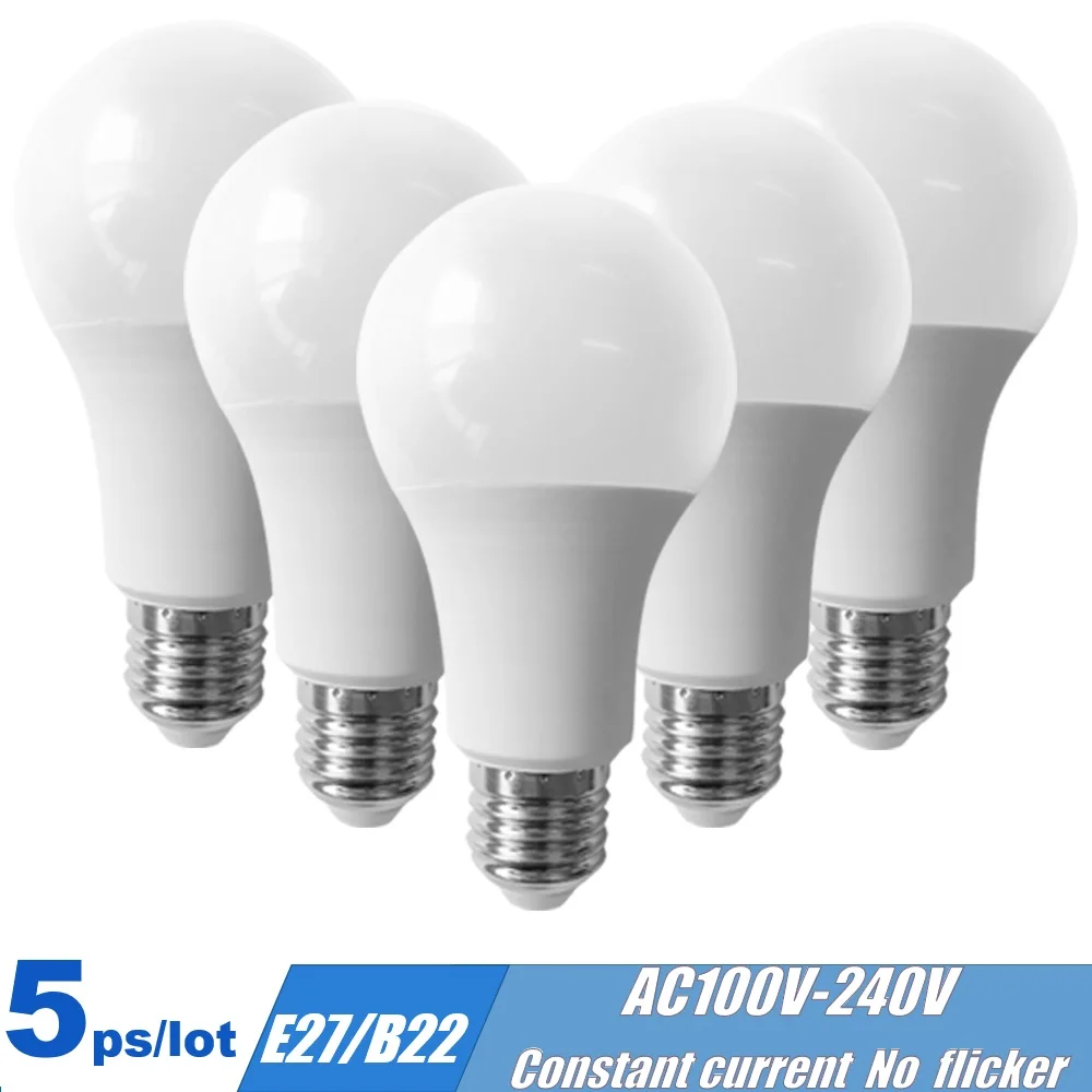 Светодиодная лампа E27 B22 для внутреннего освещения, сменный светильник для чтения, лампа 3 Вт, 6 Вт, 9 Вт, 12 Вт, 15 Вт, 18 Вт, 21 Вт, 5 шт.лот