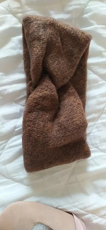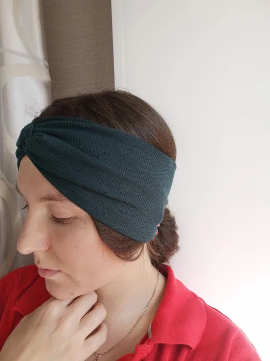 заказ был получен в короткий срок, повязка не стягивает голову (а она у меня не маленькая), слегка чешется,терпимо, цвет как на фото.заказывайте смело.на осень и теплую зиму