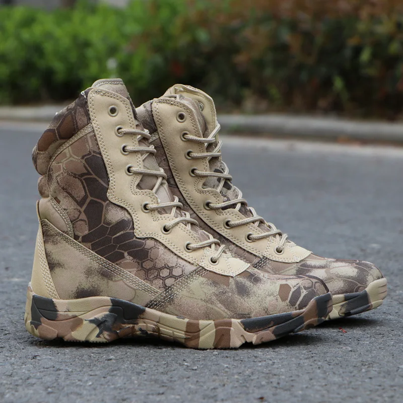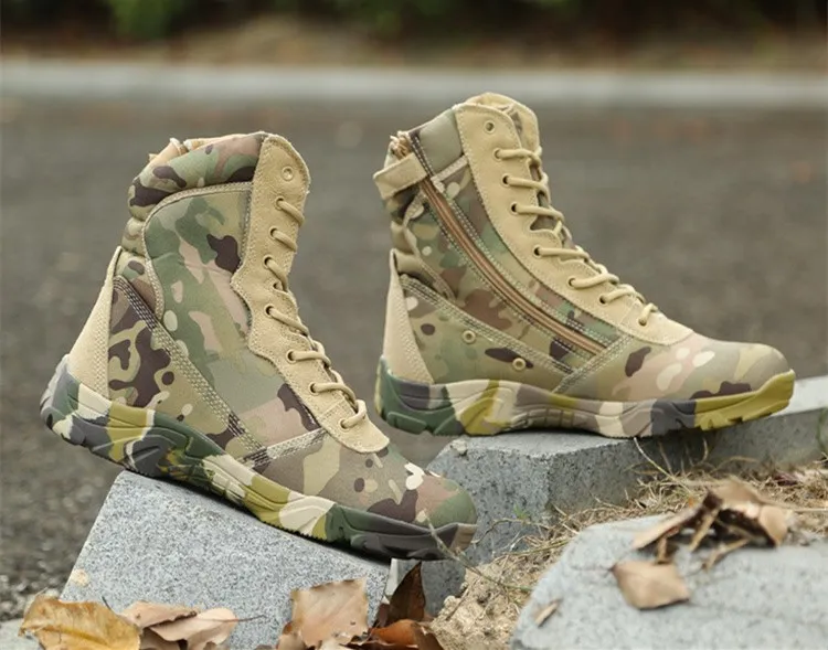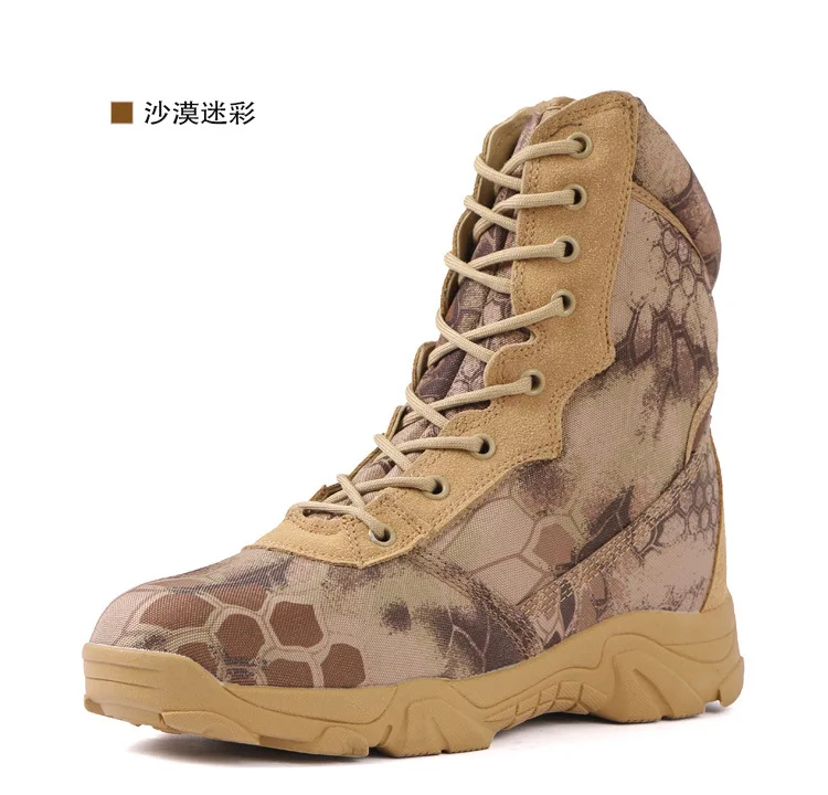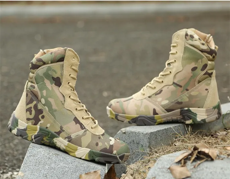В Военном Стиле Для мужчин на открытом воздухе Водонепроницаемый камуфляжные армейские тактические ботинки для пустыни Ультралегкая дышащая обувь на нескользящей подошве; Восхождение Пеший Туризм высокие ботинки
