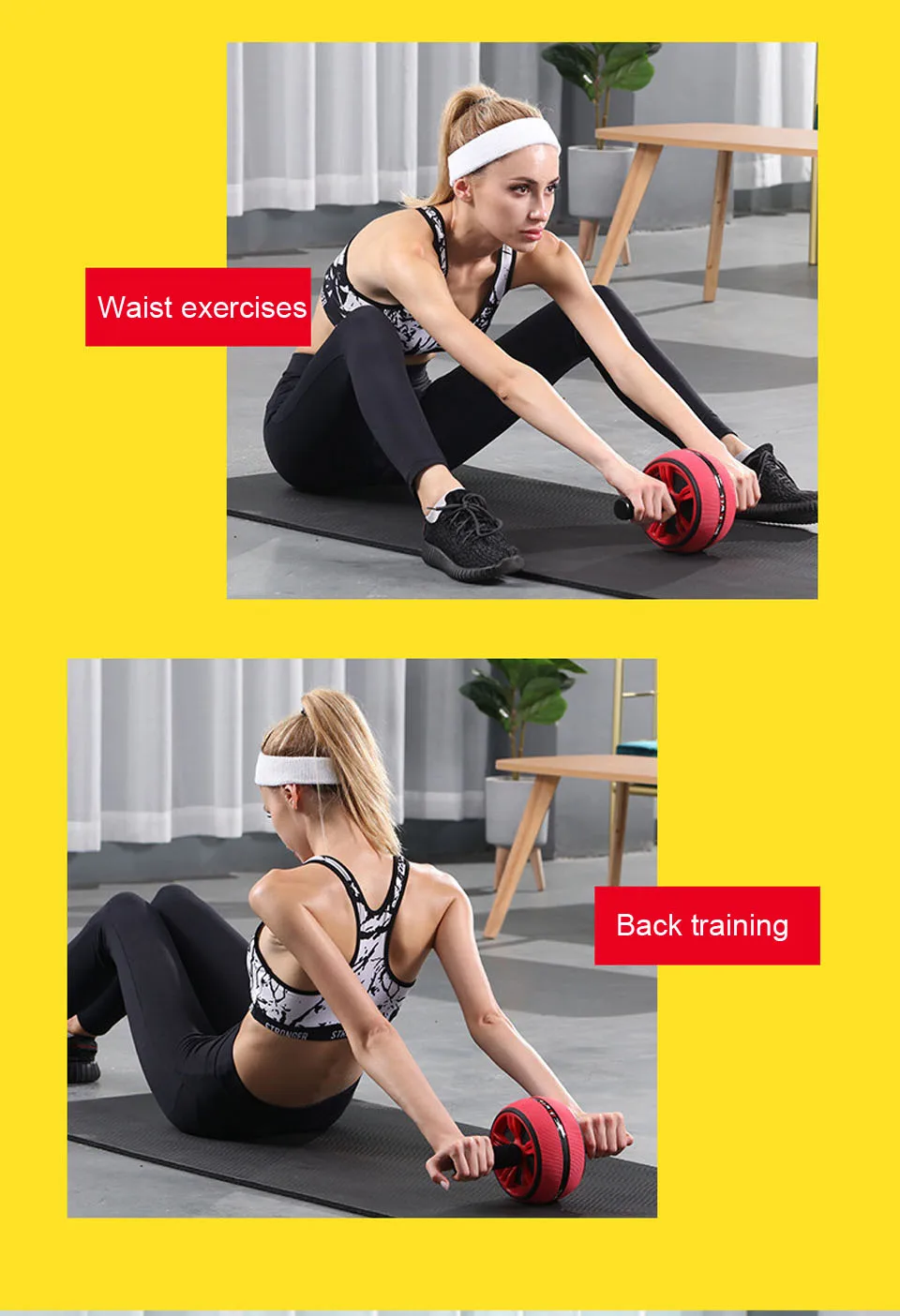 Тренажер для брюшного фитнеса с двойным колесом, ролик для тренировки в тренажерном зале для рук, спины, живота, тренажер без шума, оборудование для фитнеса, колеса