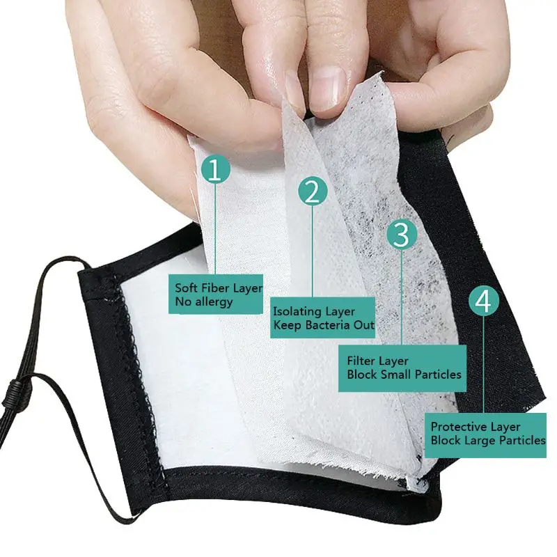 5 шт., детская черная маска, регулируемая Пыленепроницаемая 4-слойная хлопковая маска для губ, моющаяся многоразовая уличная маска для детей