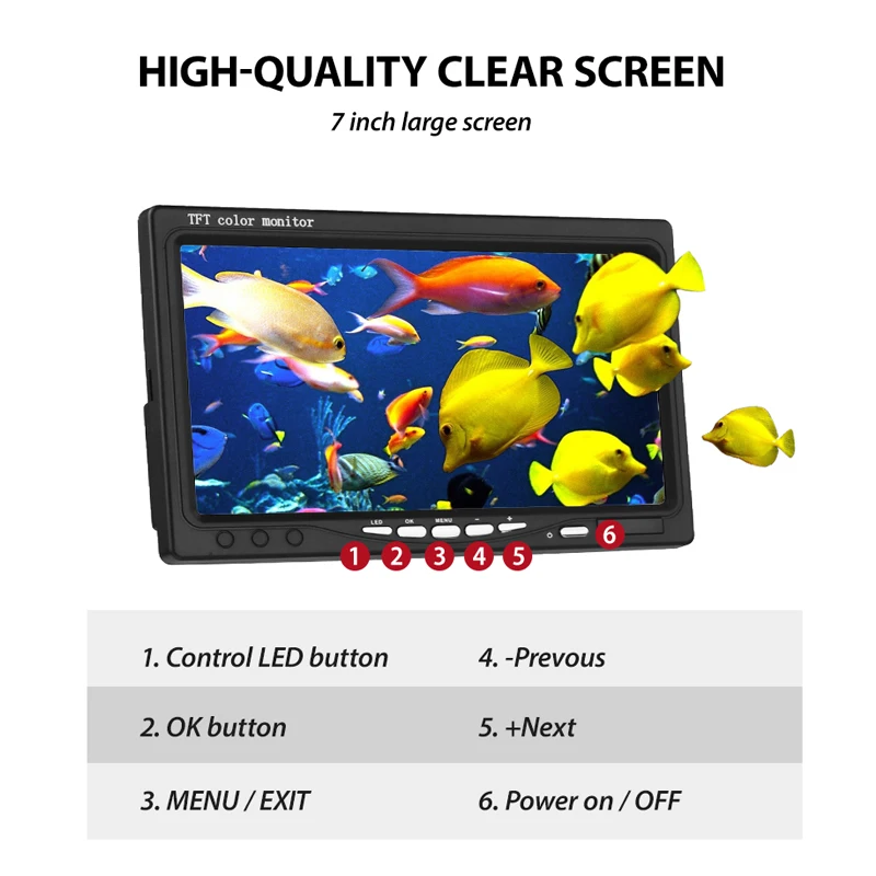 Камера для зимней подледной рыбалки, 7 дюймов, 15 м, 1000TVL, рыболокатор, двойная лампа, 24 светодиода, для подледнойморской рыбалки