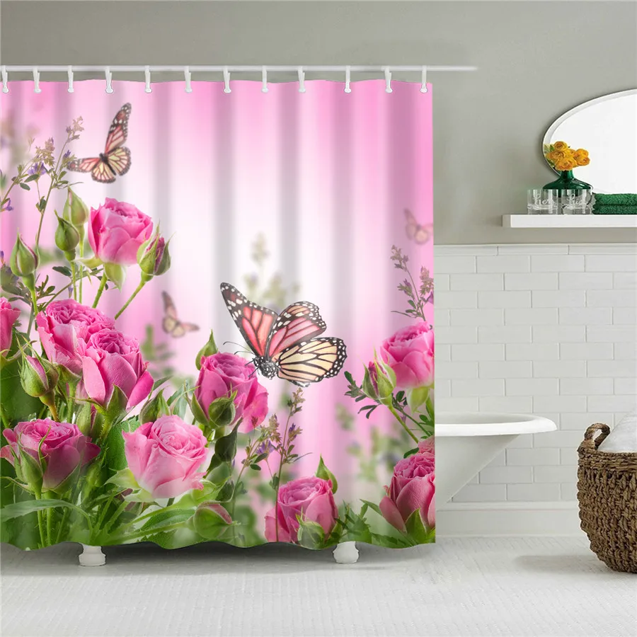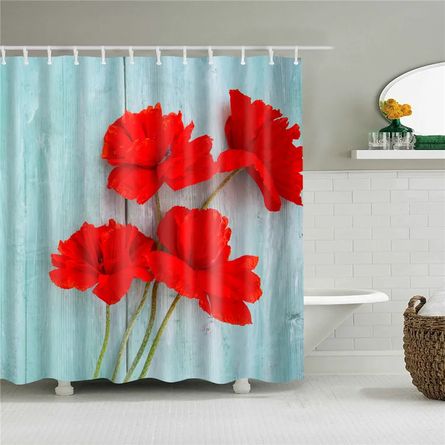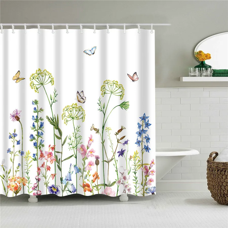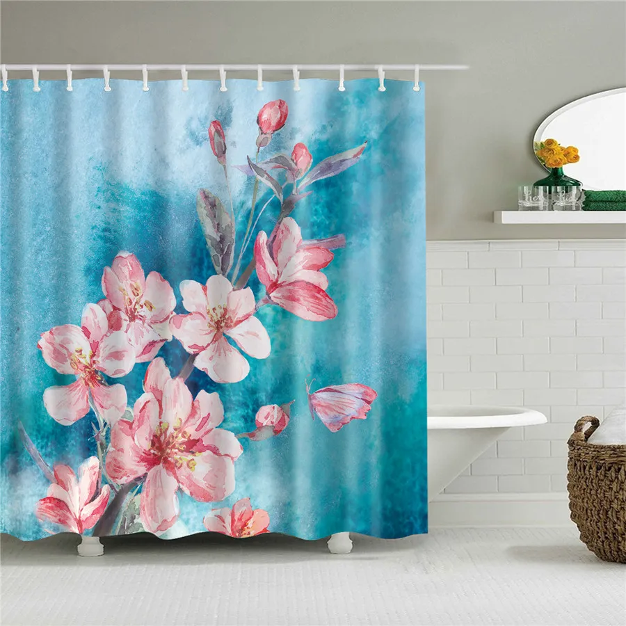Занавеска для душа из водонепроницаемого полиэстера с цветами, живо...