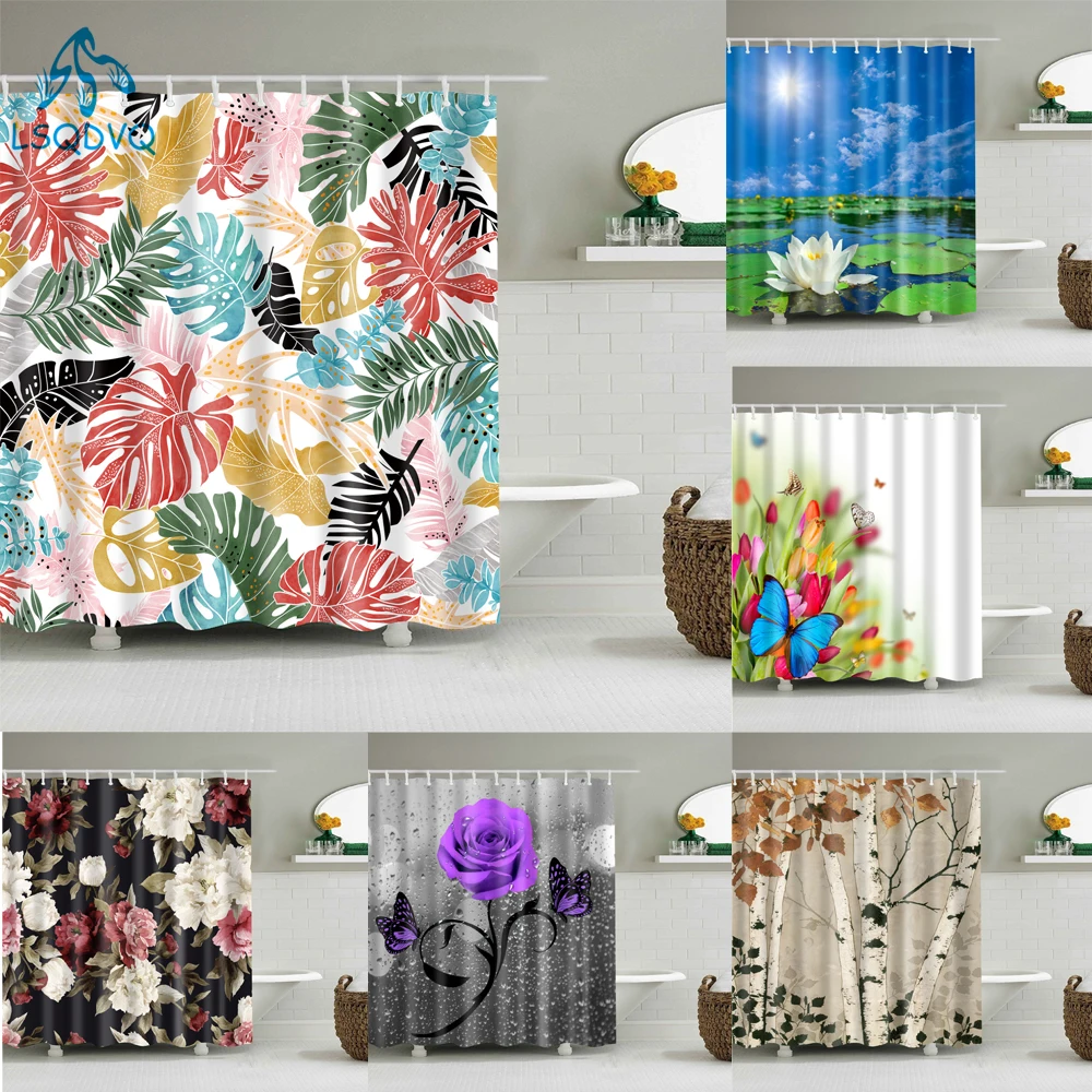 Тропические занавески для душа с изображением растений, s, цветов, ...