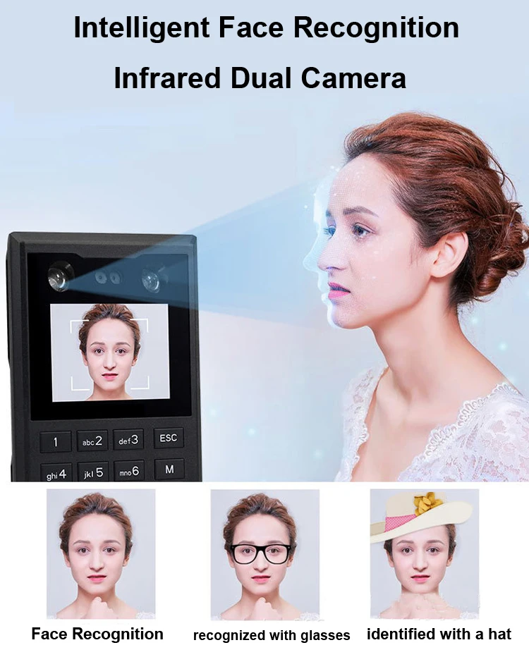 3) распознавание лица с помощью инфракрасного ночного видения высокого разрешения и профессионального цвета двойная камера, терминал может