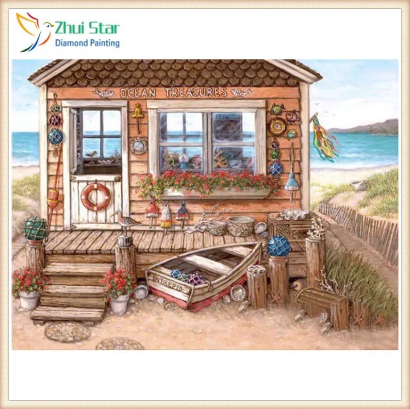Zhui Star Diy Алмазная картина крест Приморский домик полная Алмазная вышивка 5D Алмазная мозаика домашний Декор подарок gx
