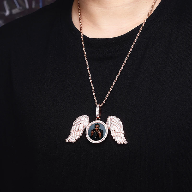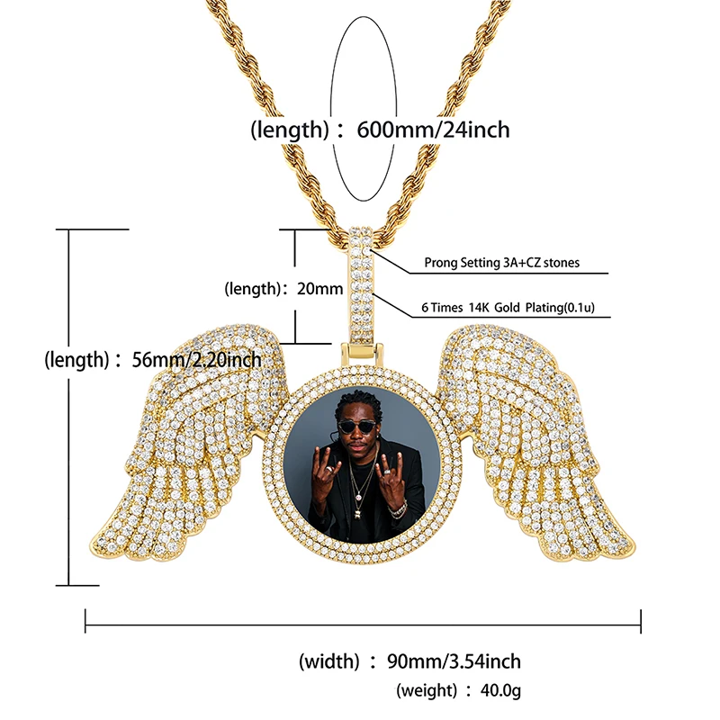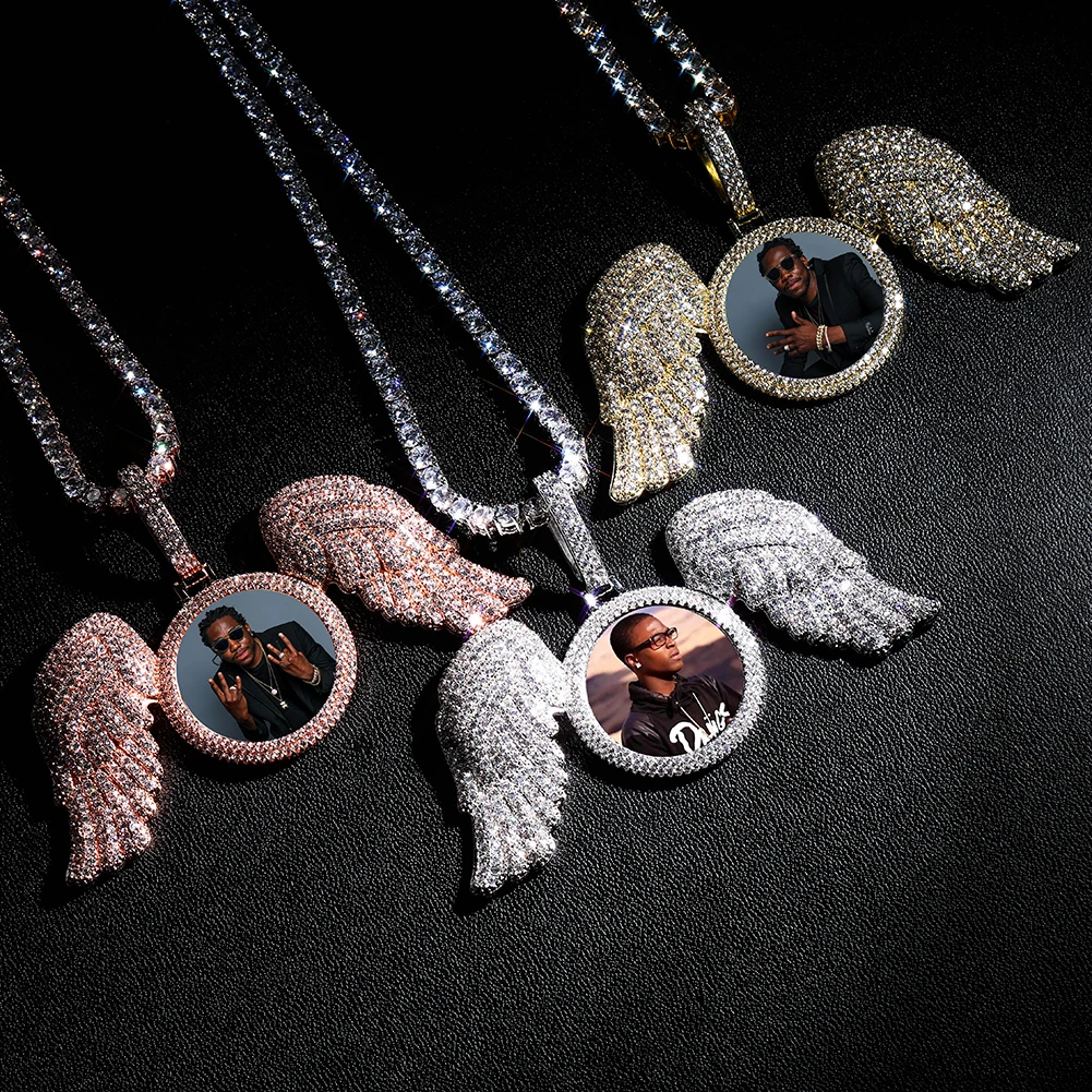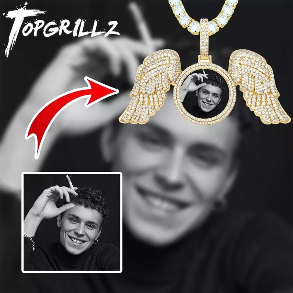 TOPGRILLZ новые крылья Ангела Под заказ фото медальон кулон и ожерелье сверкающие кубический цирконий кулон хип-хоп ювелирные изделия подарок