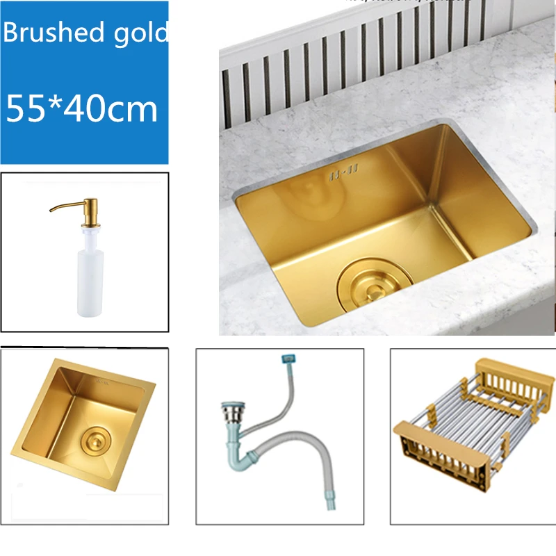 Золотые кухонные раковины из нержавеющей стали 304, набор кухонных чаш, матовая Золотая кухонная раковина, Undermount 55x40 см