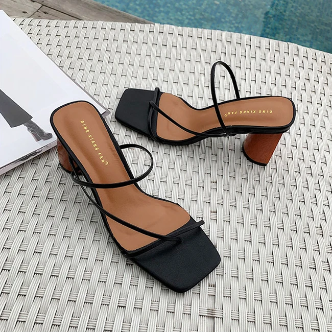 Женские босоножки на высоком каблуке, винтажные сандалии с квадратным носком и узкими ремешками, обувь на лето, 2020