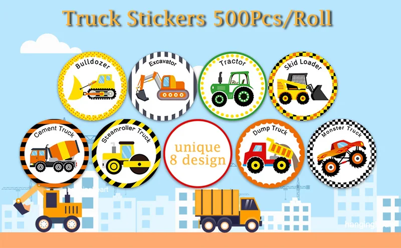 Посылка: 1 рулон грузовика на день рожденияНаклейки (500 шт наклеек/рулон)