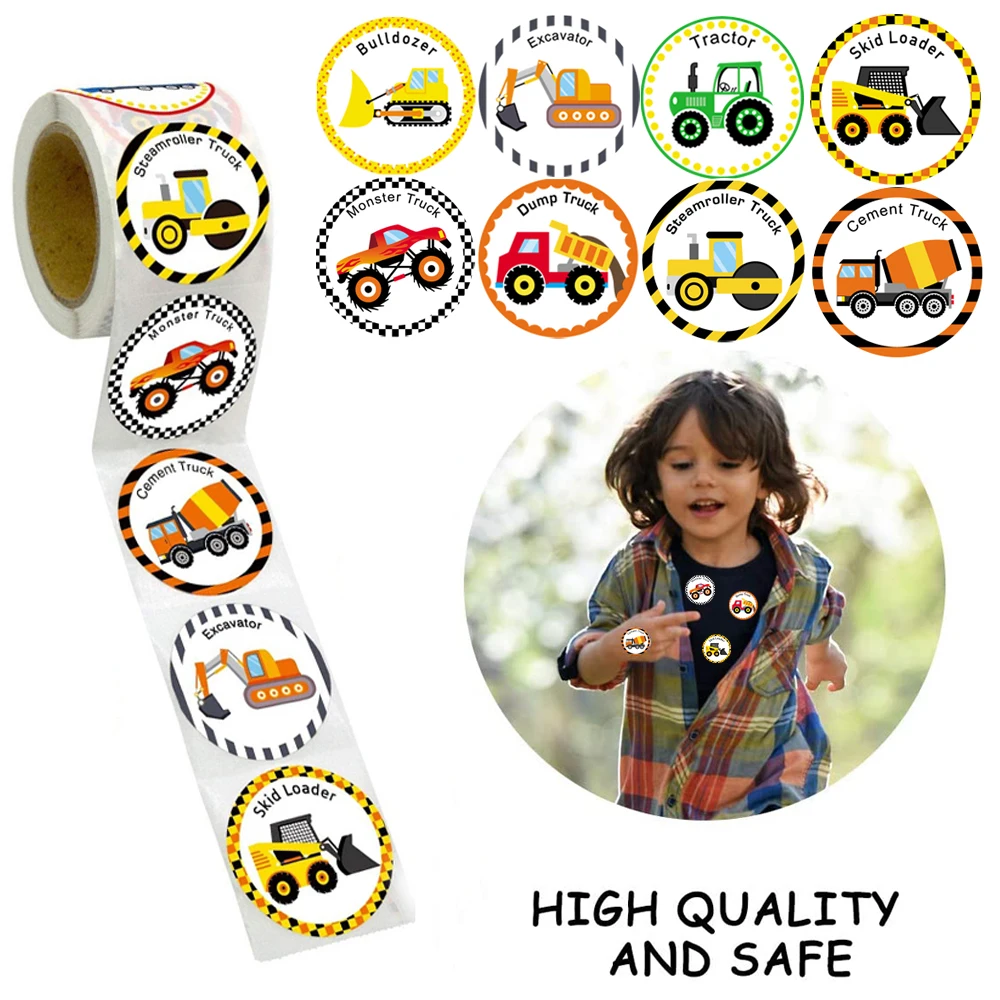 Наклейки для грузовиков для детей, перфорированные канцелярские наклейки, строительная машина, день рождения для студентов, детей, 500 шт./рулон, новинка 2020
