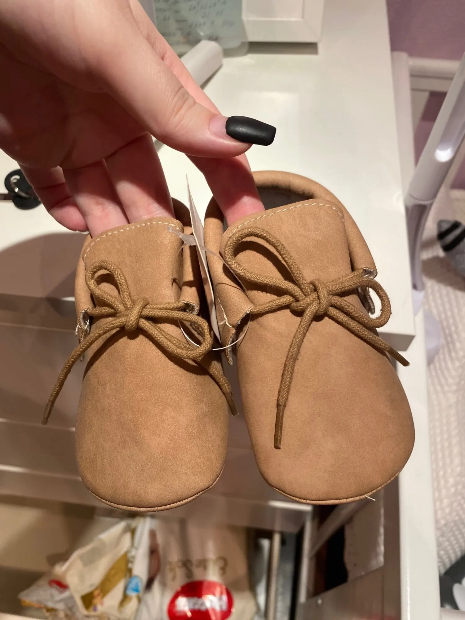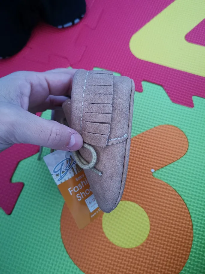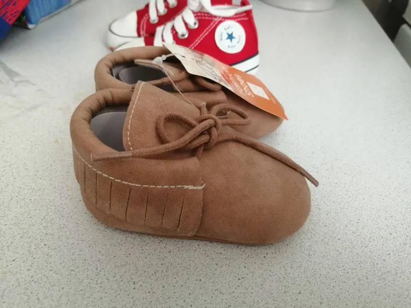 Коричневый цвет светлее, чем на картинке, но искусственная кожа выглядит как настоящая. На мой взгляд, эти туфли для детей в возрасте 9 месяцев, они слишком большие для моих семи месяцев.