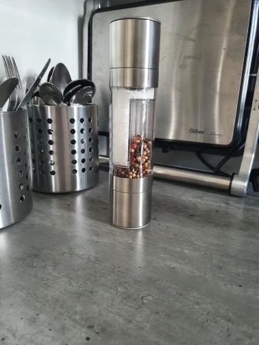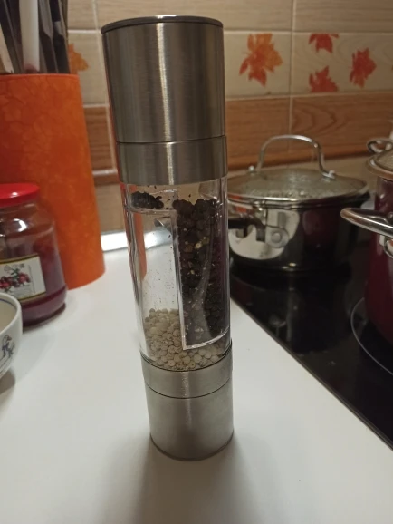 Замечательная мельничка-влезет много, не надо каждый раз заправлять в самый неудобный момент когда все горит на плите. С каждой стороны есть крышечка. Сделано очень качественно, раньше пользовались мельницей за 5к от bodum - эта ничем не уступает. Рекомендую! Пришла в спб за наделю.