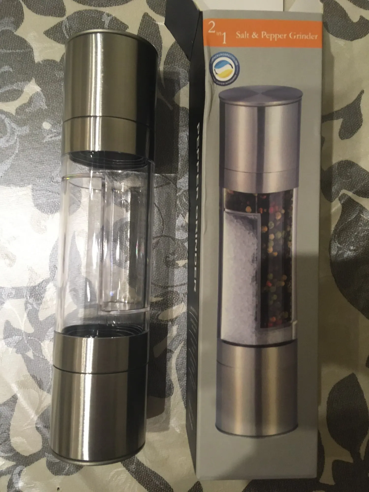 Отличная мельница, очень хорошо упакована, в несколько слоев пупырём, коробка не повреждена. Сам корпус пластиковый, остальное металл. Очень хорошо перемалывает как перец, так и крупную морскую соль. Плюс быстро пришла, недели за три. Рекомендую как на собственную кузню, так и с качестве подарка.