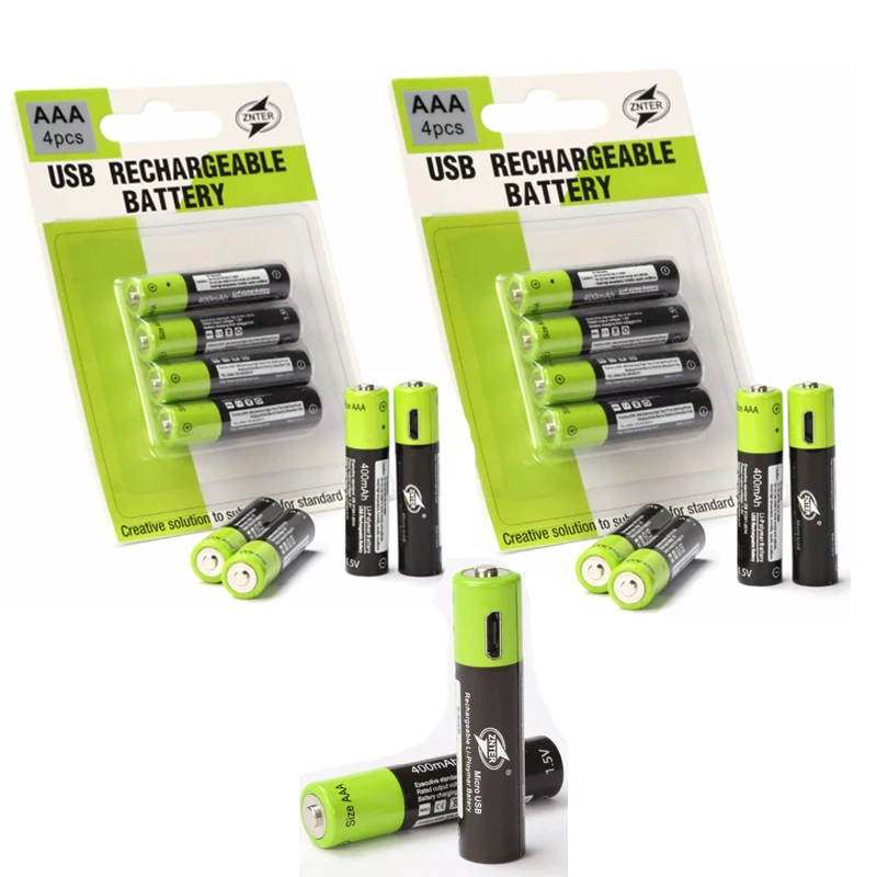 Оригинальный ZNTER 10 шт. 1,5 в AAA 400 мАч Перезаряжаемые Батарея литий-полимерный Батарея Перезаряжаемые с помощью кабеля USB линии Перевозка груза падения
