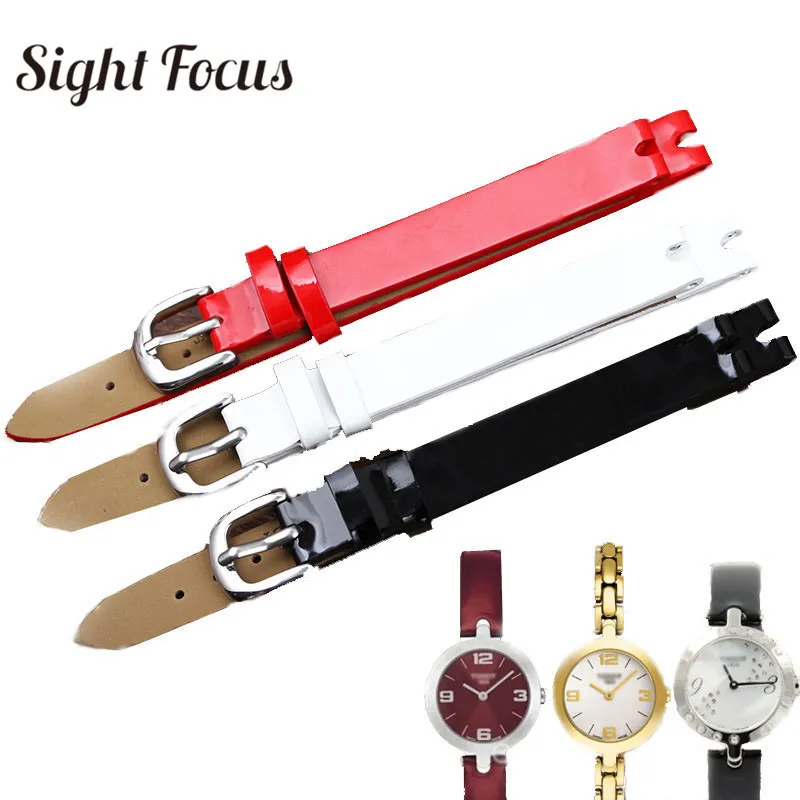 Ремешок из телячьей кожи для часов Tissot Flamingo T003, черный белый красный браслет с серебристой пряжкой, 10 мм